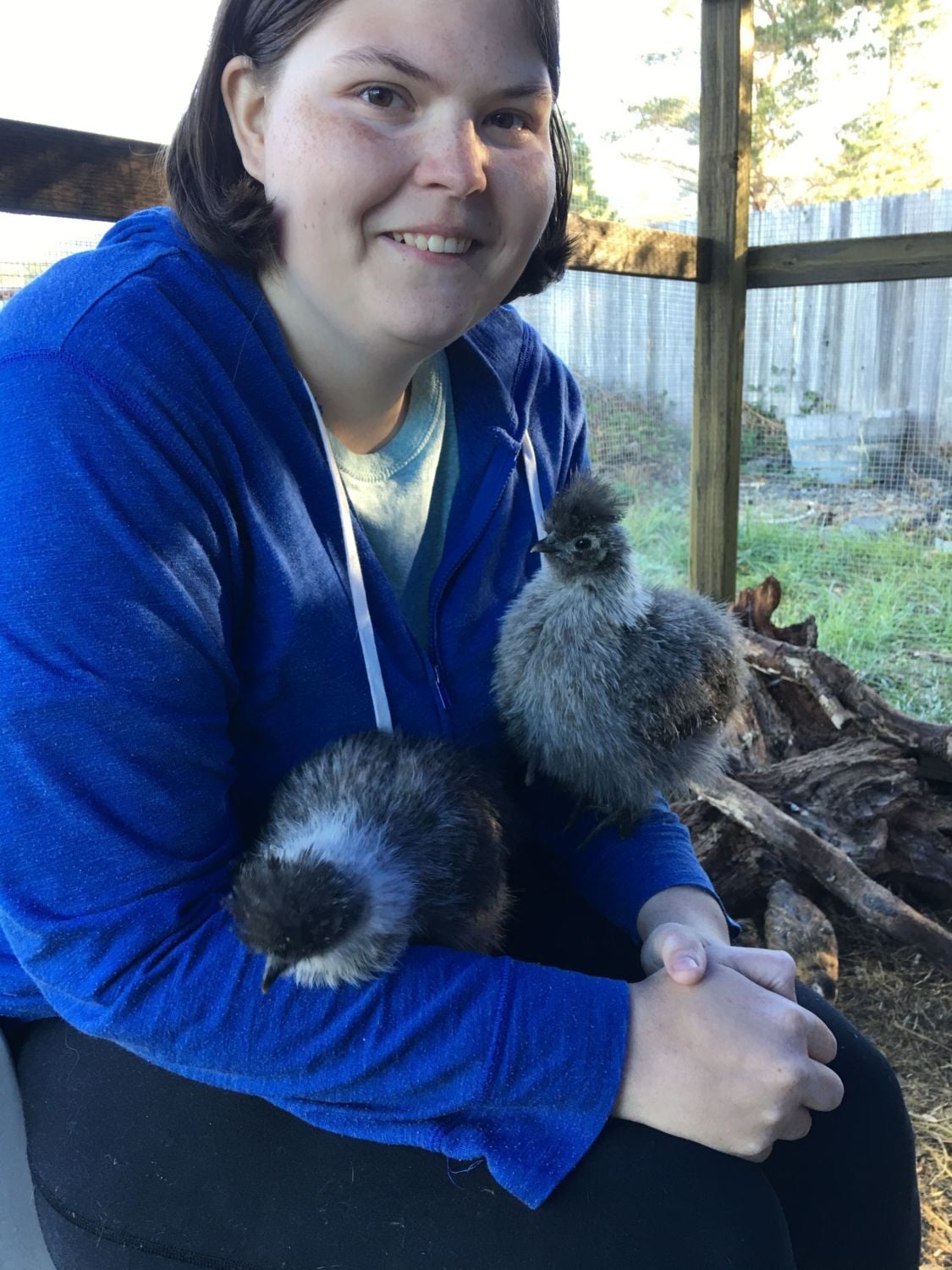 Happy Birthday to my roommate I gave her two silver partridge silkies she named Luna and Jupiter