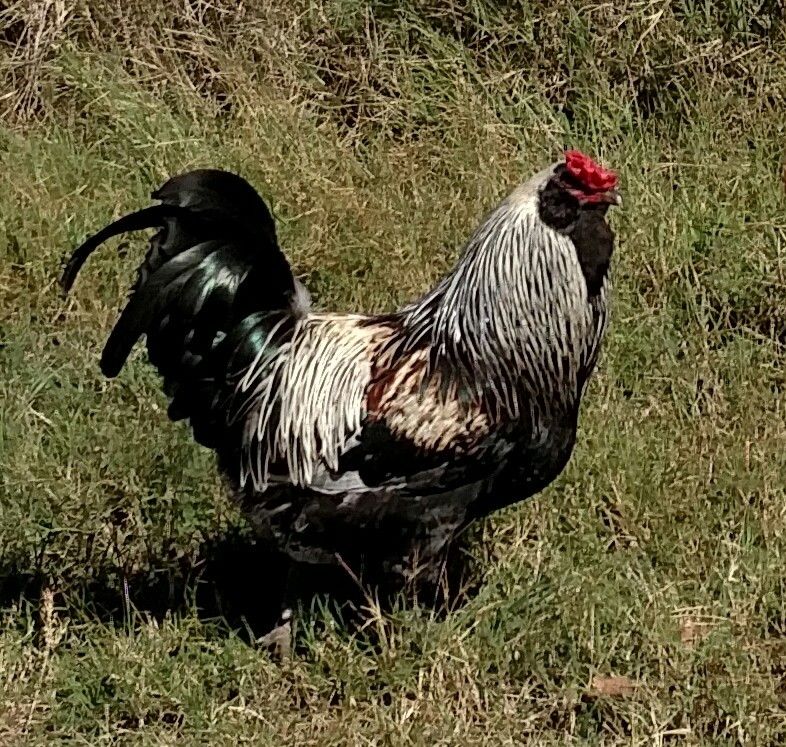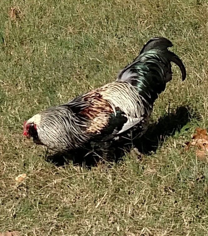 He almost looks like a Salmon Faverolle with that deep red and silver. No such thing as an ugly Easter Egger. That's one of the reasons I like them so much.