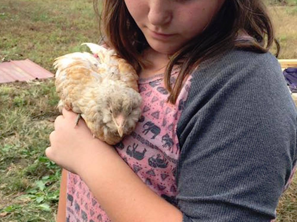 Chickaboom meeting her babies for the first time. I hatched her pink eggs in an incubator. Their names are Moe, Larry, Curly, Junior, Cutie, and Phyllis. I can't wait to see the color of their eggs when they start laying!