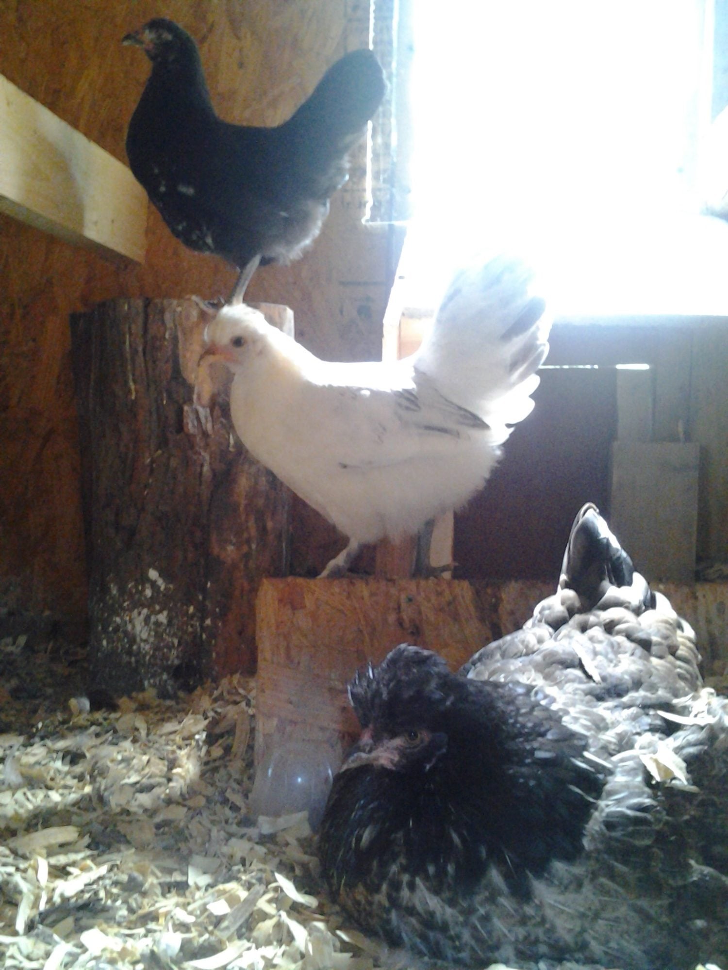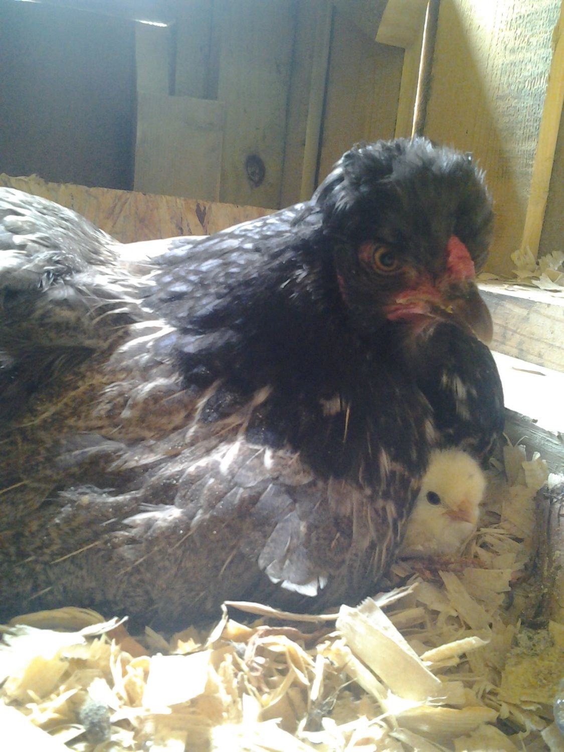 notes: These are both ZIggys grown babies and they still hang with her while she is broody again. Both chicks hatched from her green eggs.
