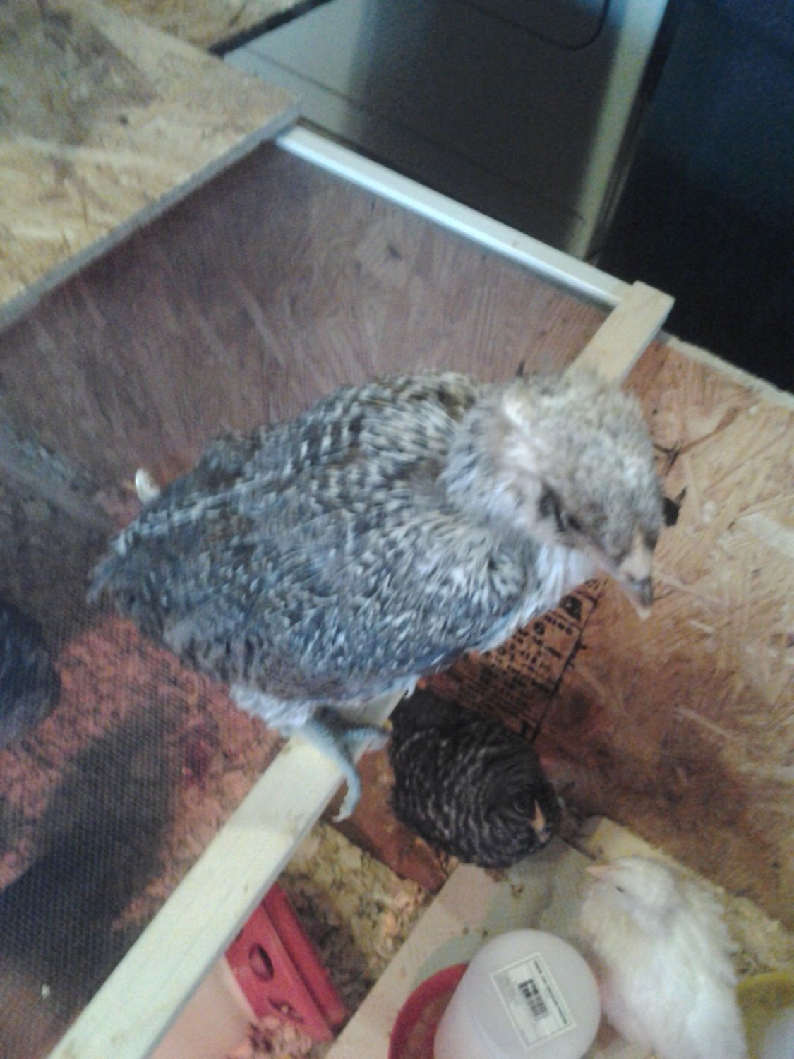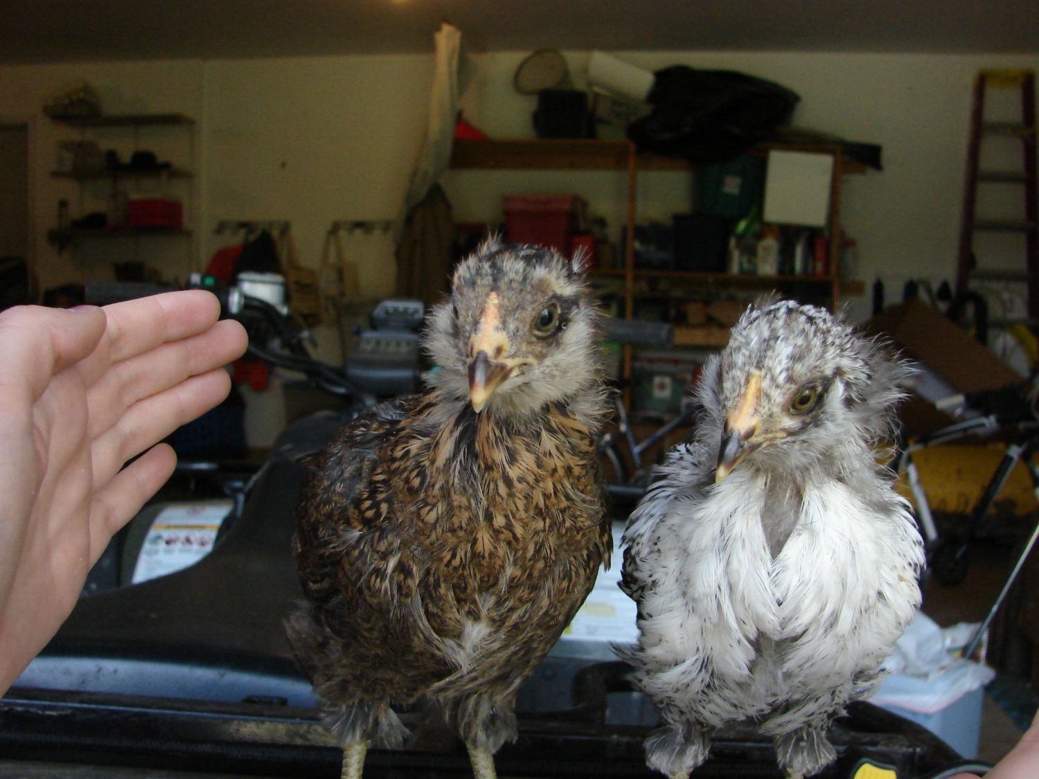 Your 2 look like 2 of my EE chicks they are almost 5 weeks now. Our Rose was a pretty reddish brown chick. But at an early age I could tell her wing size and shape was different than any of the other chicks. I told my husband oh no I think shes a roo. Then we said no she cant be. Then 2 weeks later all the other chicks have tons of feathers and long fast growing tail feathers and i looked at Rose and nope barely any feathers really short straight wings no tail to speak of boooooo. I looked at hubby again and said I think Rose is a roo. Then we said nah she cant be. So just when shes catching up on feather growth and shes finally getting a tail i notice whoa rose isnt red anymore she is getting all these white feathers speckled with black. I still thought nope shes a girl and she is gonna be a beaUtiful whitish EE. Theeeeeeen I came across this thread and now i find out most black and white EE are male I havent heard this before. NOOOOOOO. LOL. The ups and downs of thrying to figure out our chicks is crazy. We will see what Rose looks like next week Im sure she will surprise us. *Fingers crossed for an egg not a crow*