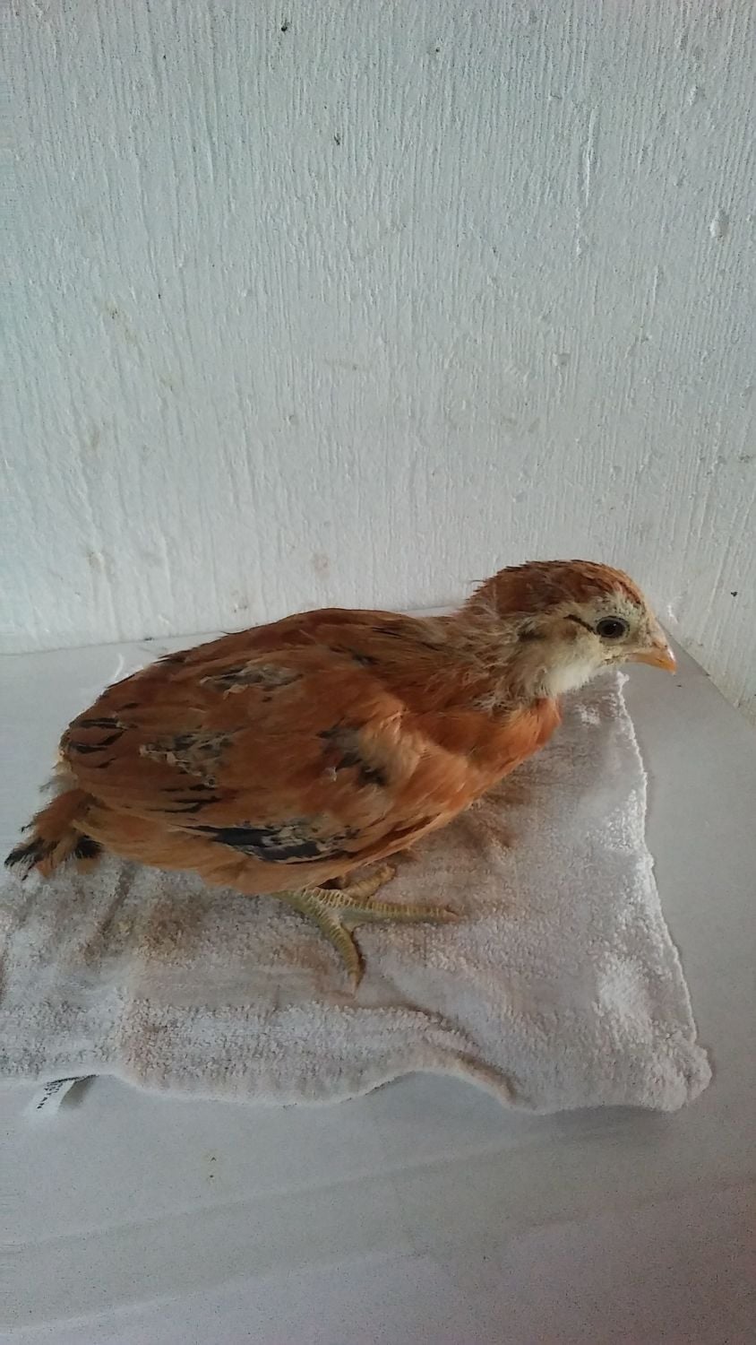 Goldy Pretty sure this will be a roo. However still hasn't developed Pointed hackle feathers. Will rename Heinlein if it is.