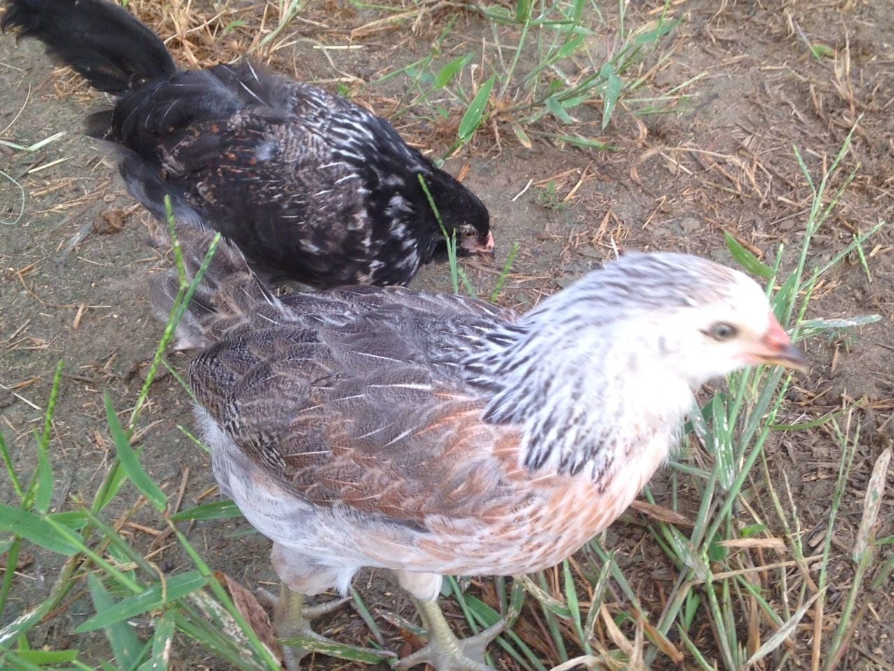I don't see anything in the photos that looks like pox. #2 has some funky saddle feathers, but they are rounded, and it looks like she's going through a juvenile molt.OK I think one day they are deffinately cockerel then the next day I am 99% sure they are pullets. The other ones were very easy to tell but these two are odd balls they still have patchy spots that are not completely feathered in. And then I noticed the saddle feathers on #2 looked long and pointy. To me #1 comb looks iffy it doesn't have the one straight row of peas like the other ones. It's wider also it has a dry patchy spot right on the comb where u wondered if it was from pecking or possibly dry pox? These are my first chickens so I have no clue.![]()