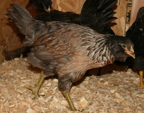 The one is back is certainly a cockerel not only by color and comb but he's trying to crow. Pitifully but a crow non the less. But the chick in front, please tell me it's a she. The egg was from a Speckled Sussex hen with an EE roo.