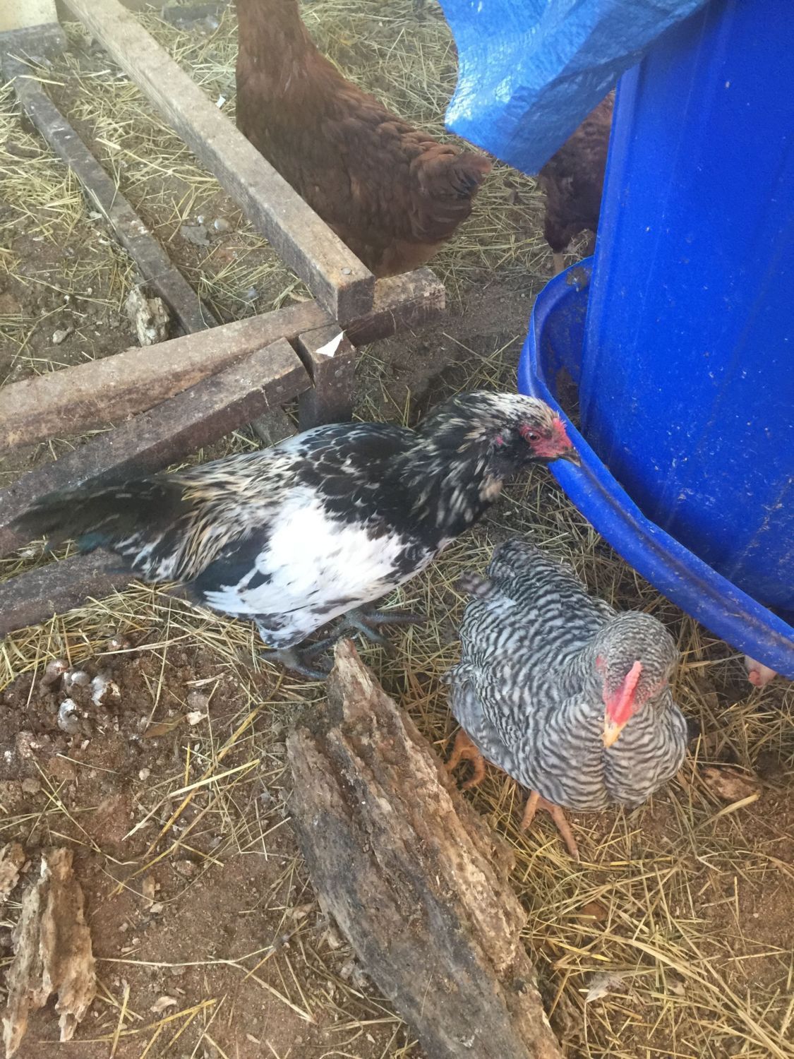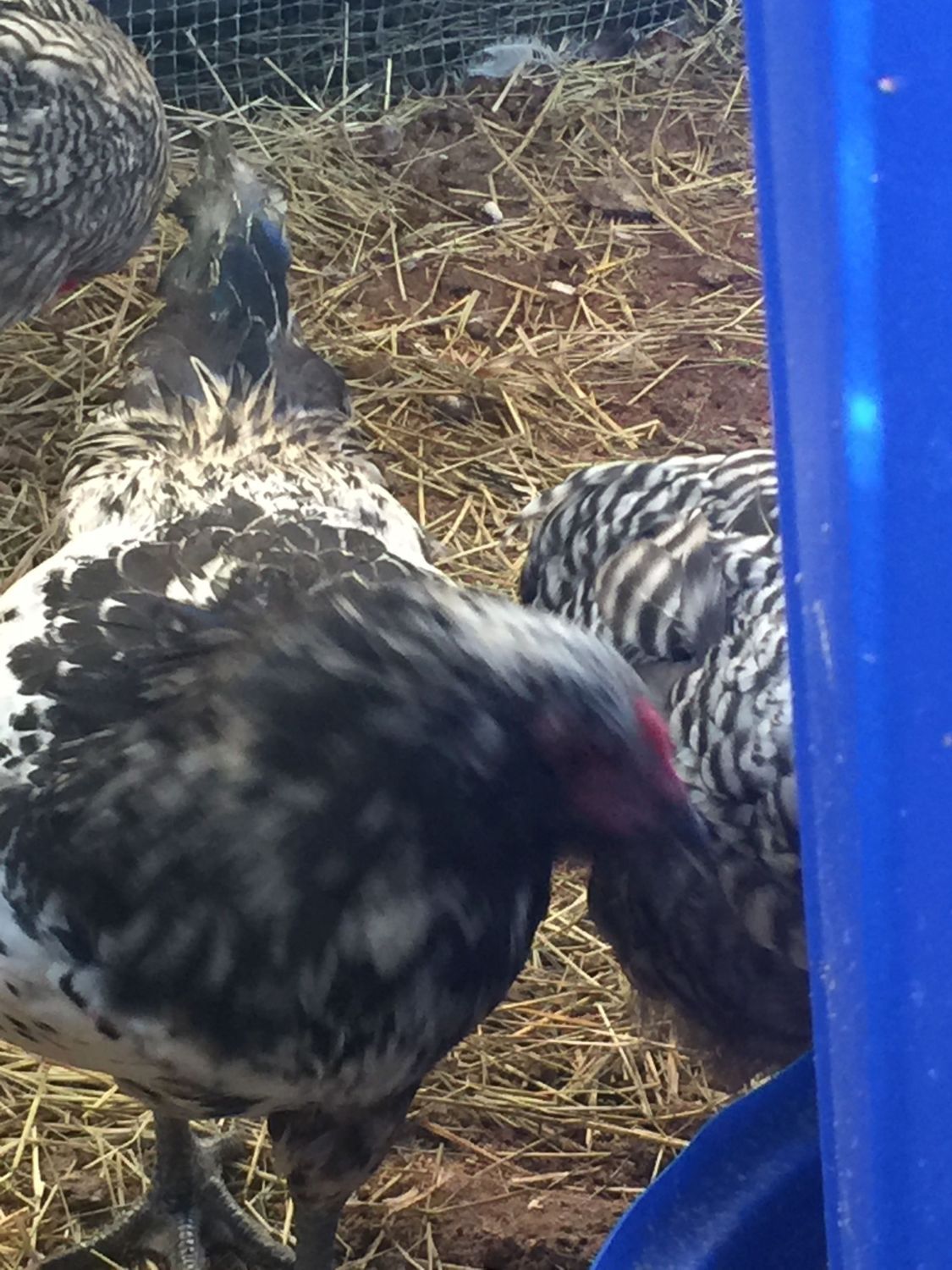 Both Atlas and the barred birds in the last picture are male. Do you see how thin and pointed his back feathers are? Those are male saddle feathers.This is Atlas! I'm not sure if atlas is a boy or girl. The comb is really read, but no where near as big as the roo that we have and know it's a EE roo so I'm not sure because looking at atlas and looking my EE hen and my EE roo Atlas looks like both like I can see a hen and I can see a roo... So I'm not sure!! Please help!!![]()
