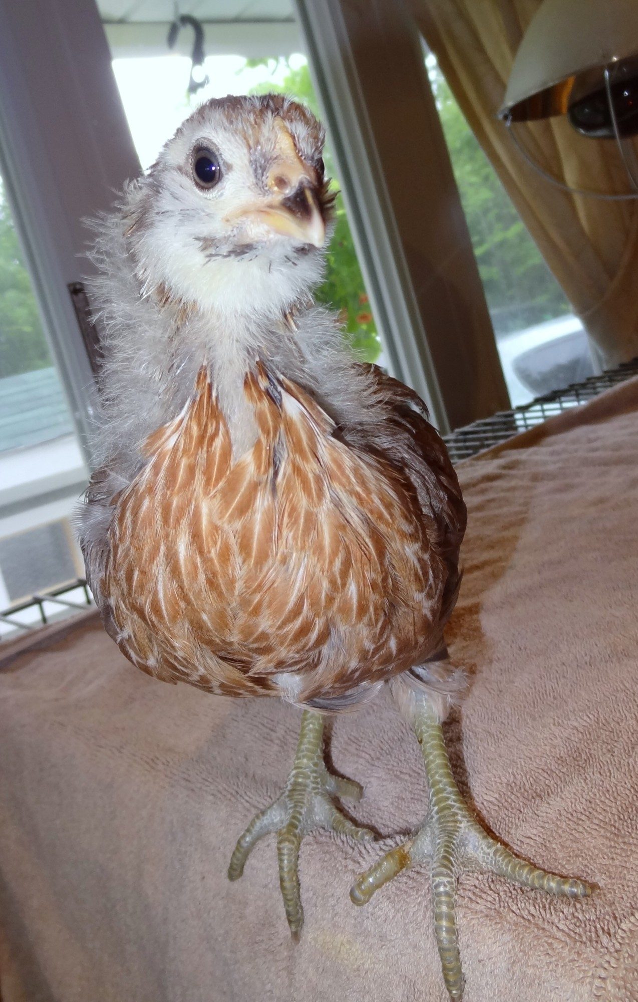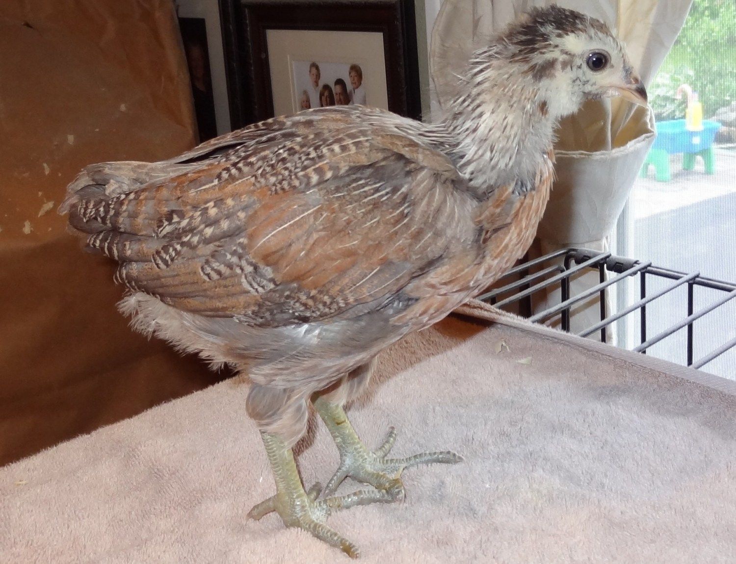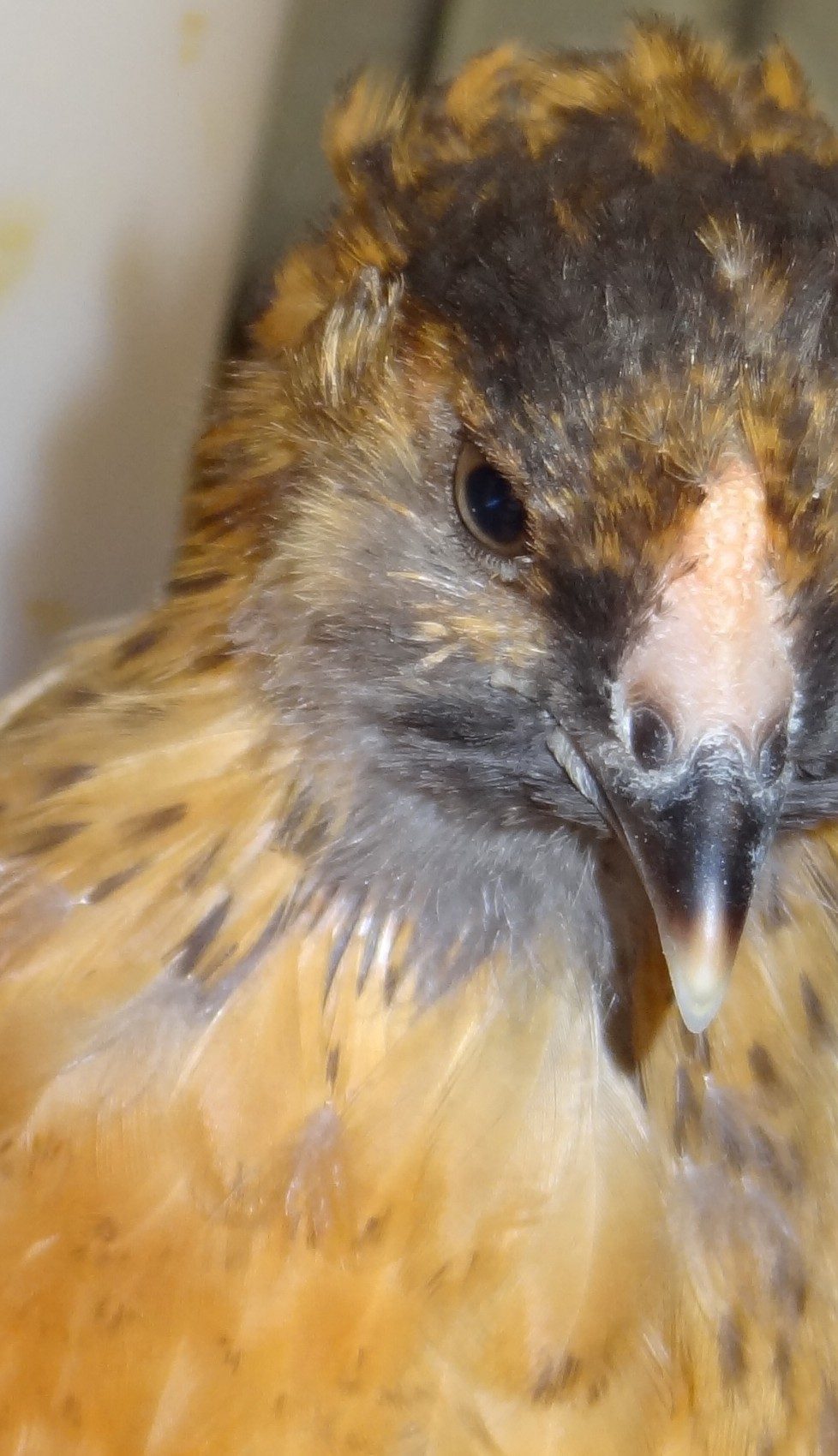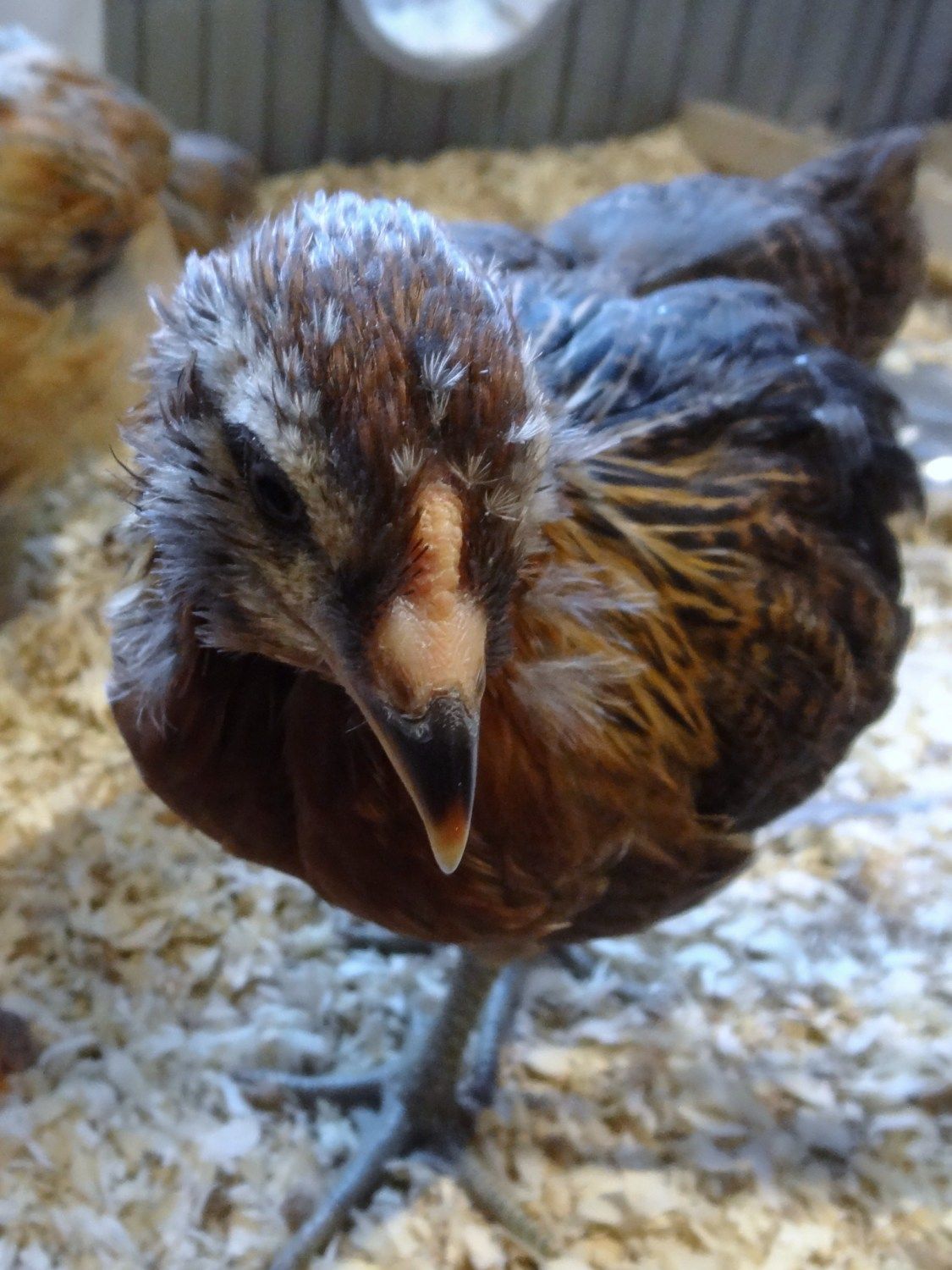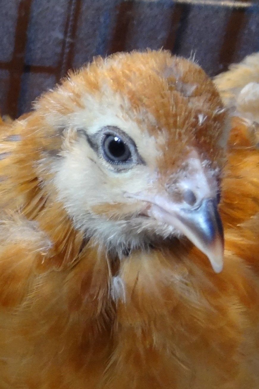 This chick turned away just as I snapped the picture. It has almost no comb showing and what's there has no pink. The face is very "pretty"