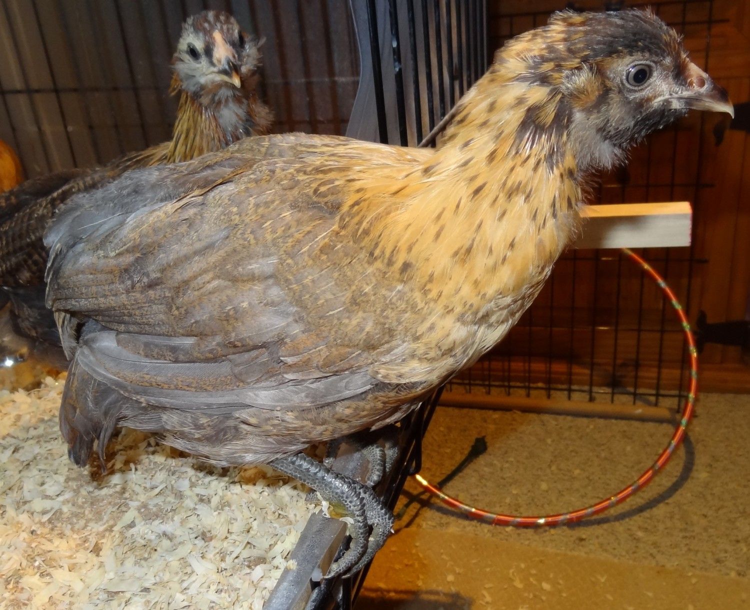 The one is back is certainly a cockerel not only by color and comb but he's trying to crow. Pitifully but a crow non the less. But the chick in front, please tell me it's a she. The egg was from a Speckled Sussex hen with an EE roo.