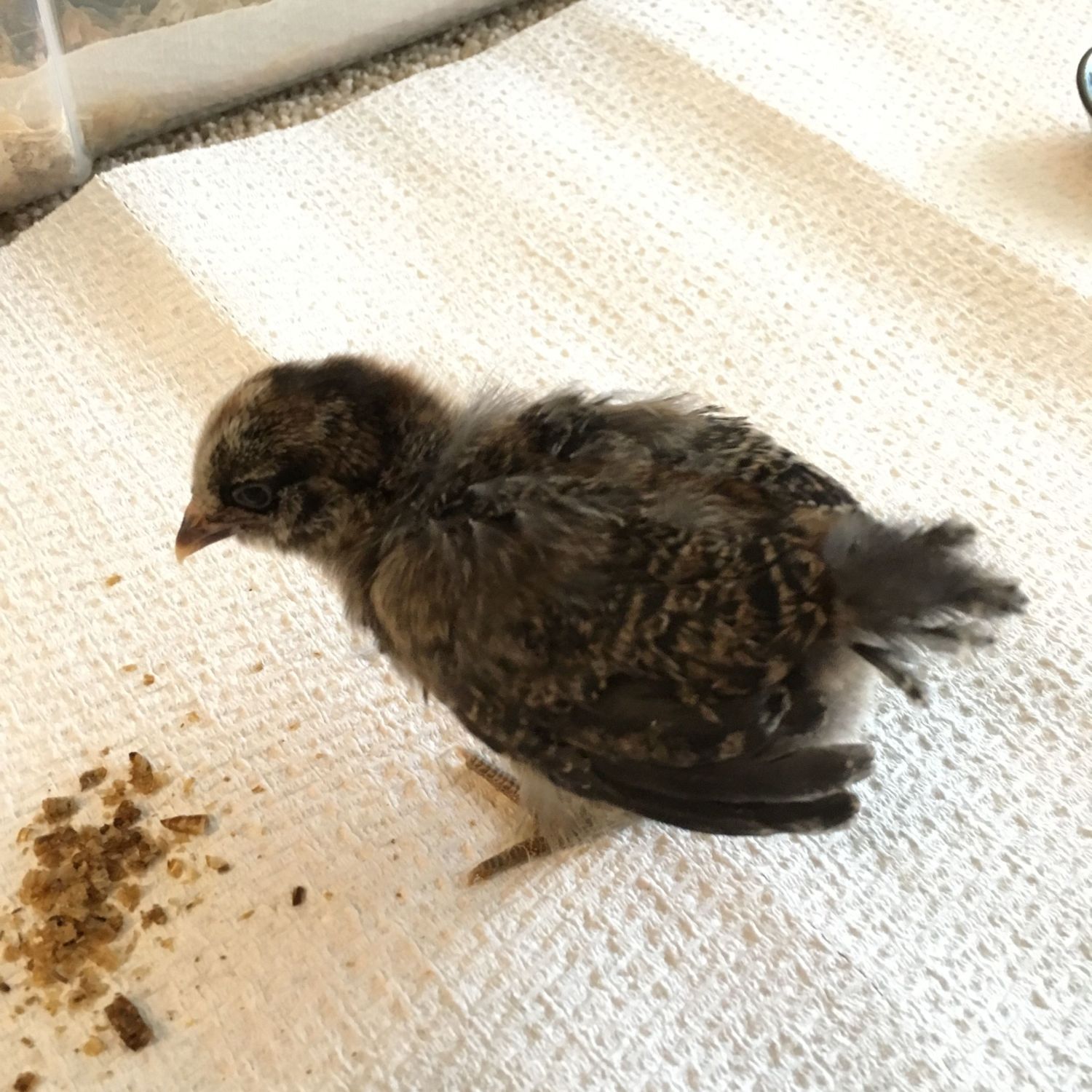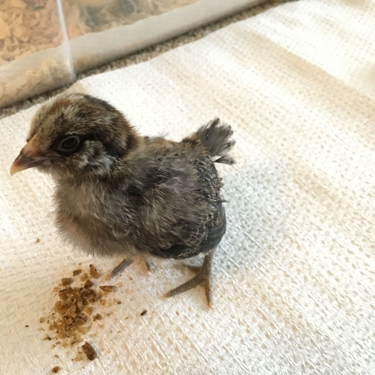 Got this "Ameraucana" at a local feed store a little more than two weeks ago. I'm guessing its age is about 2-3 weeks old.