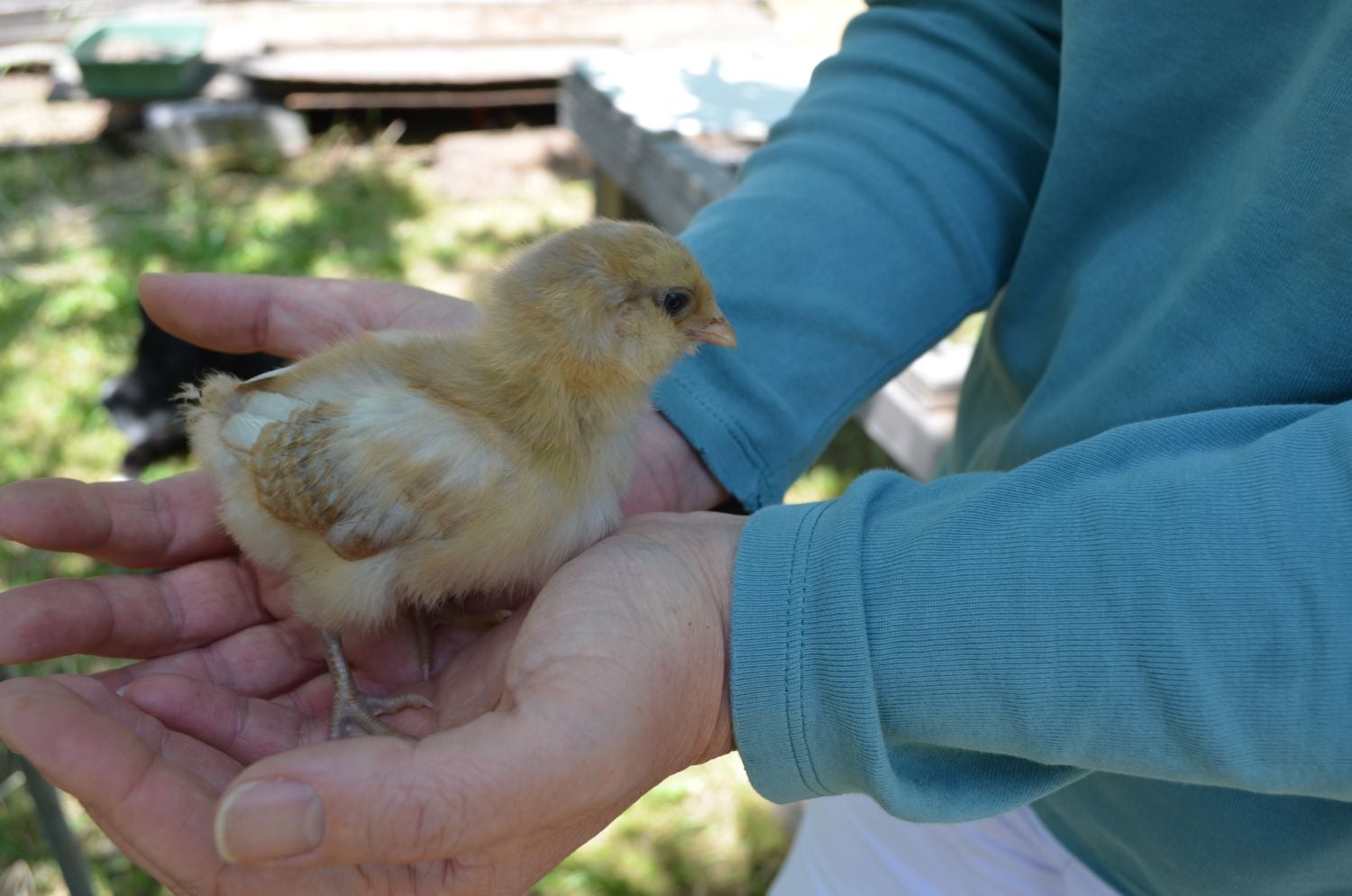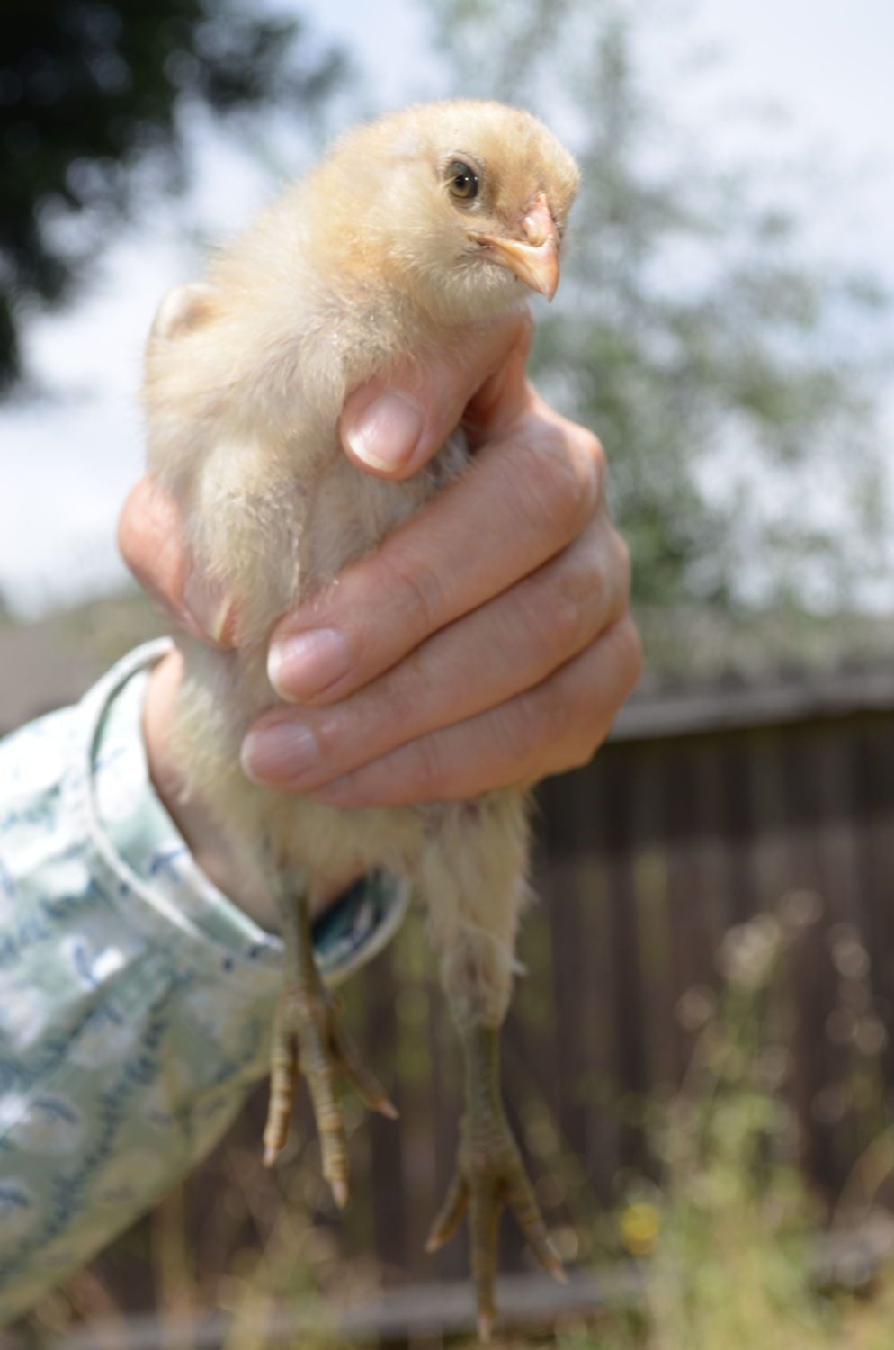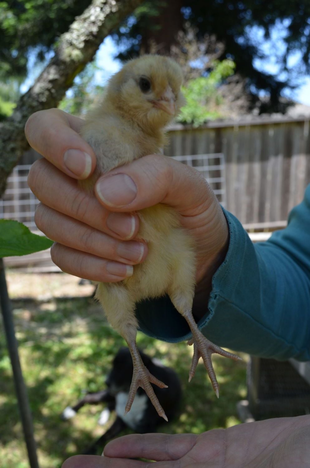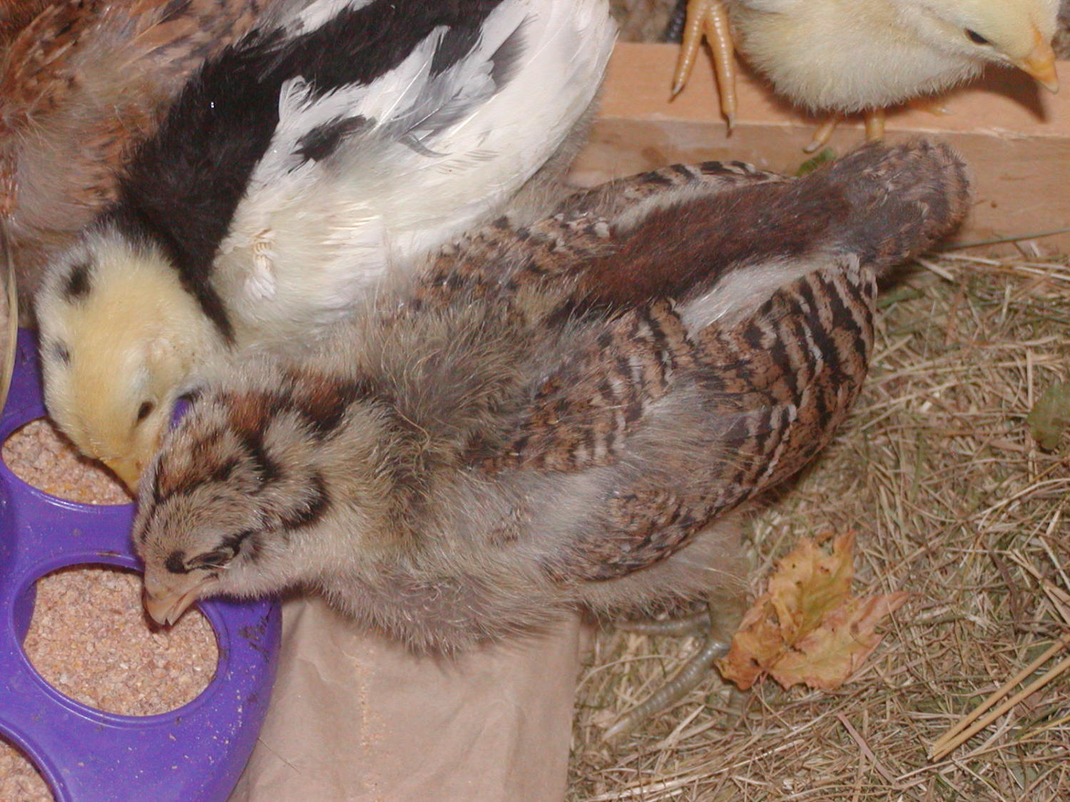 Persephone at about 12 days (couldn't find a clear picture of her earlier). I'm pretty sure Andromeda was the same. Unfortunately I don't have any good leg pictures of the 2015 chicks when they were that young.