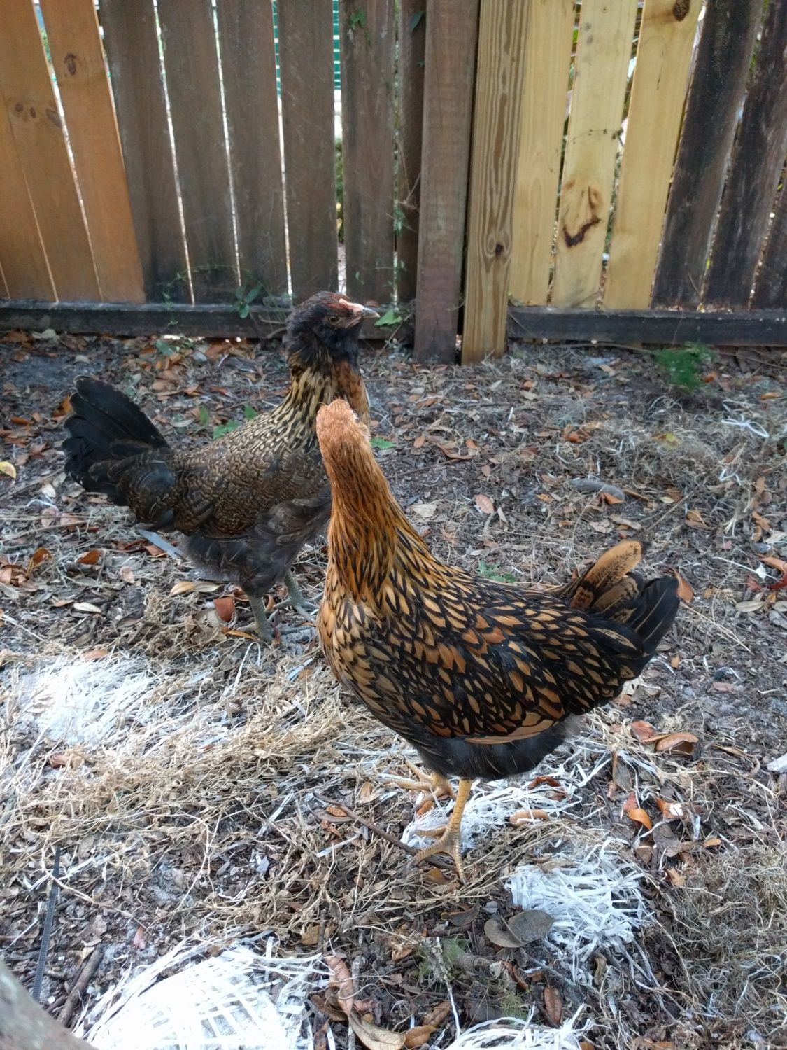 Sunlight makes for better color representation. The pics are too shadowy for me to say with confidence but I'm thinking #4 has the blotches of young masculinity and #2 the smoothness of femininity. The partridge ones are either too dark to see or turned the wrong way.