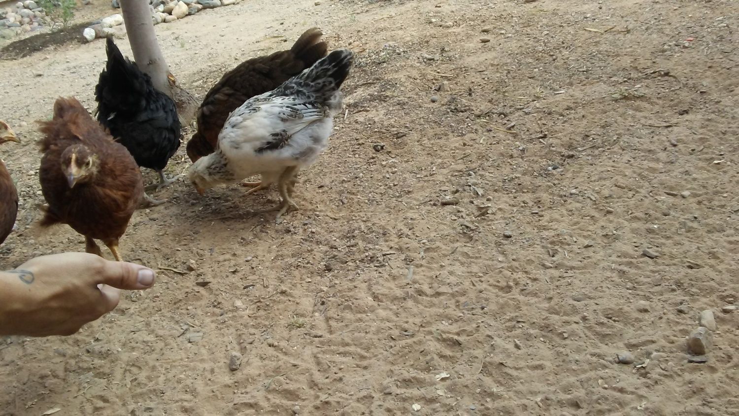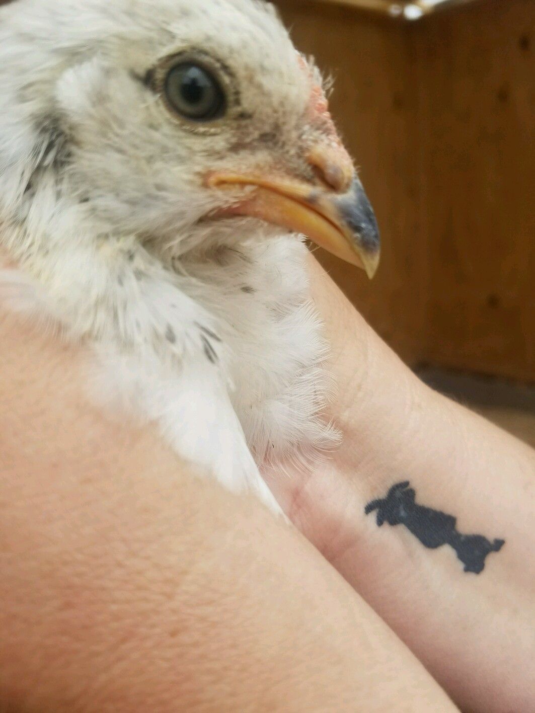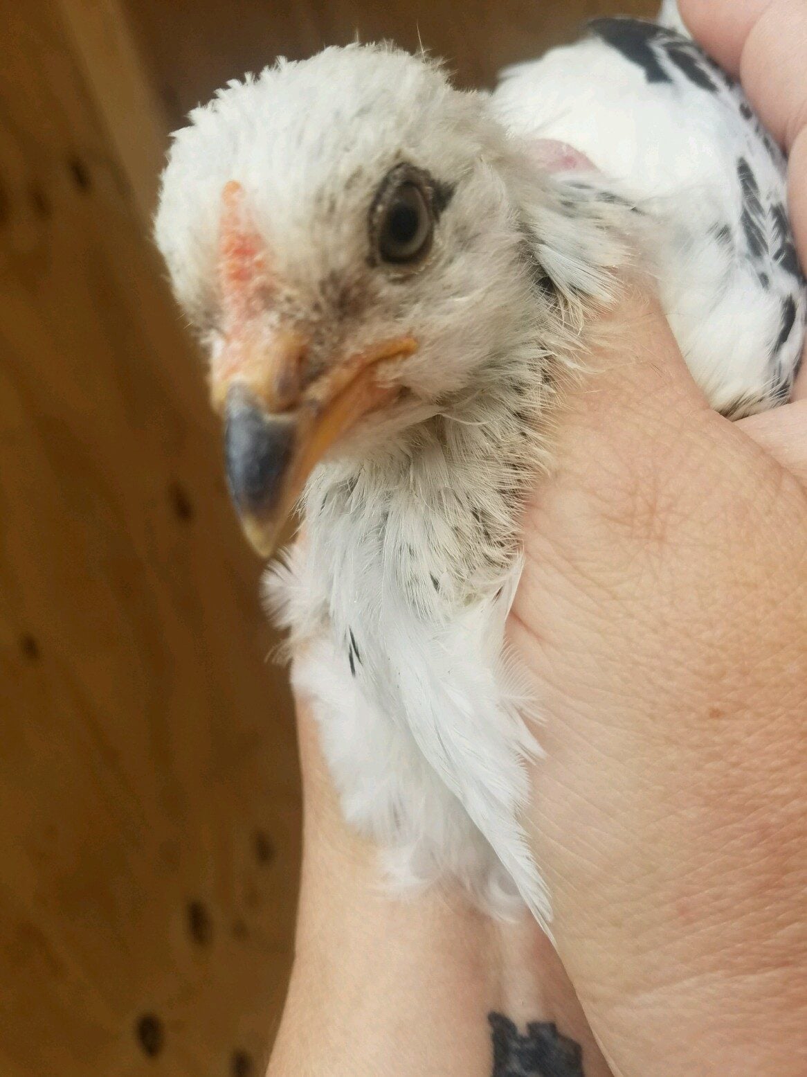 Can I get some guesses on this EE chick? I think I can see some yellow coming in around the neck and possibly the shoulders although it's faint. I got this and another EE 2/10 and think they were no more than a week old. Tail feathers were little nubs. S/he has green legs and seems to challenge my RIR who is clearly the top of the pecking order. Kind of rambunctious compared to the rest.