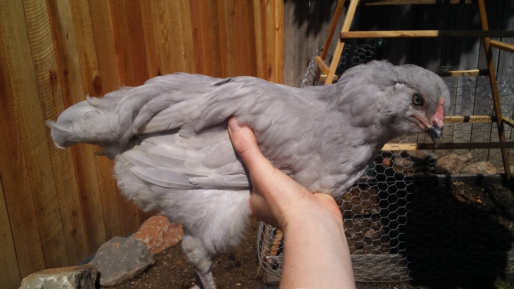 Hoping this thread is still going... I'm going to add some pics later today, but I have an 11 week old blue EE... It is solid blue with no orange or blotchy coloring. Compared to my other 2, a definite and suspected roo, it seems to have rounded neck feathers versus pointy, it's smaller and doesn't engage in chest bumping... So based on solid coloring I am really hoping girl- my only one from this hatch! Looking at blue EE roosters they seem to always have at least some variation in color, for instance black neck or tail feathers... Also I have a white and black EE I'd like everyones opinion on, as I'm still not positive, but pointy neck feathers would mean boy, right? It's coloring looks very brahma to me. Pictures to come...