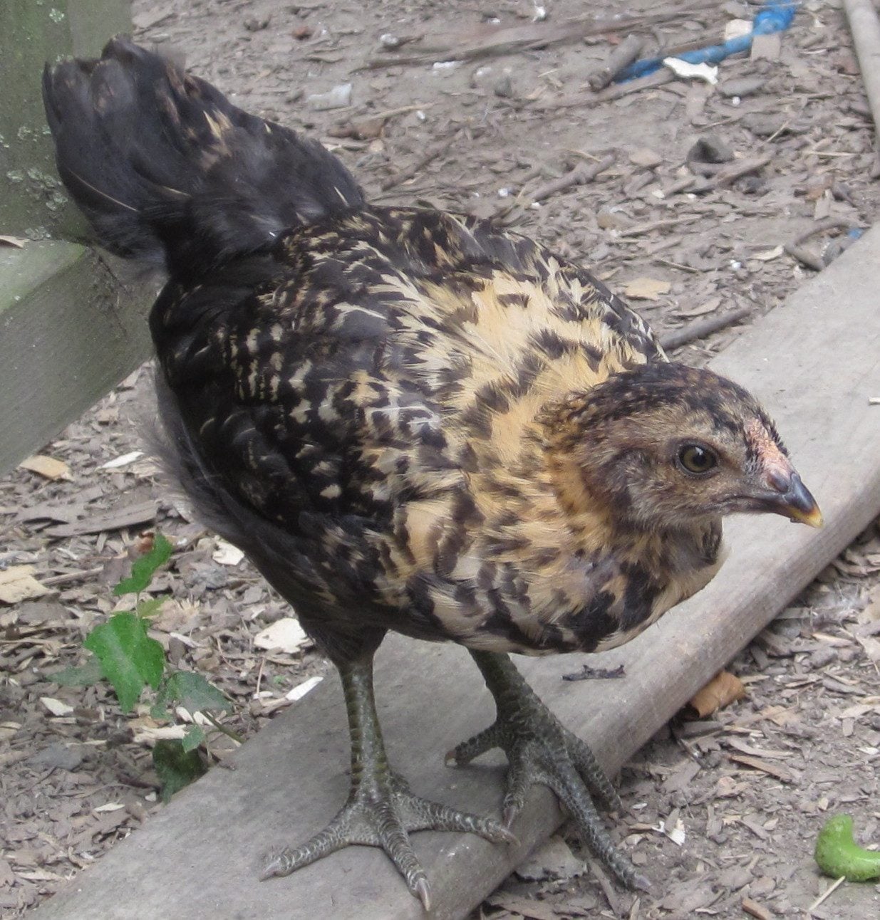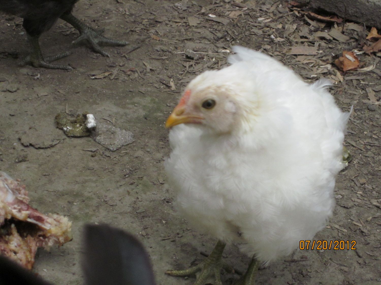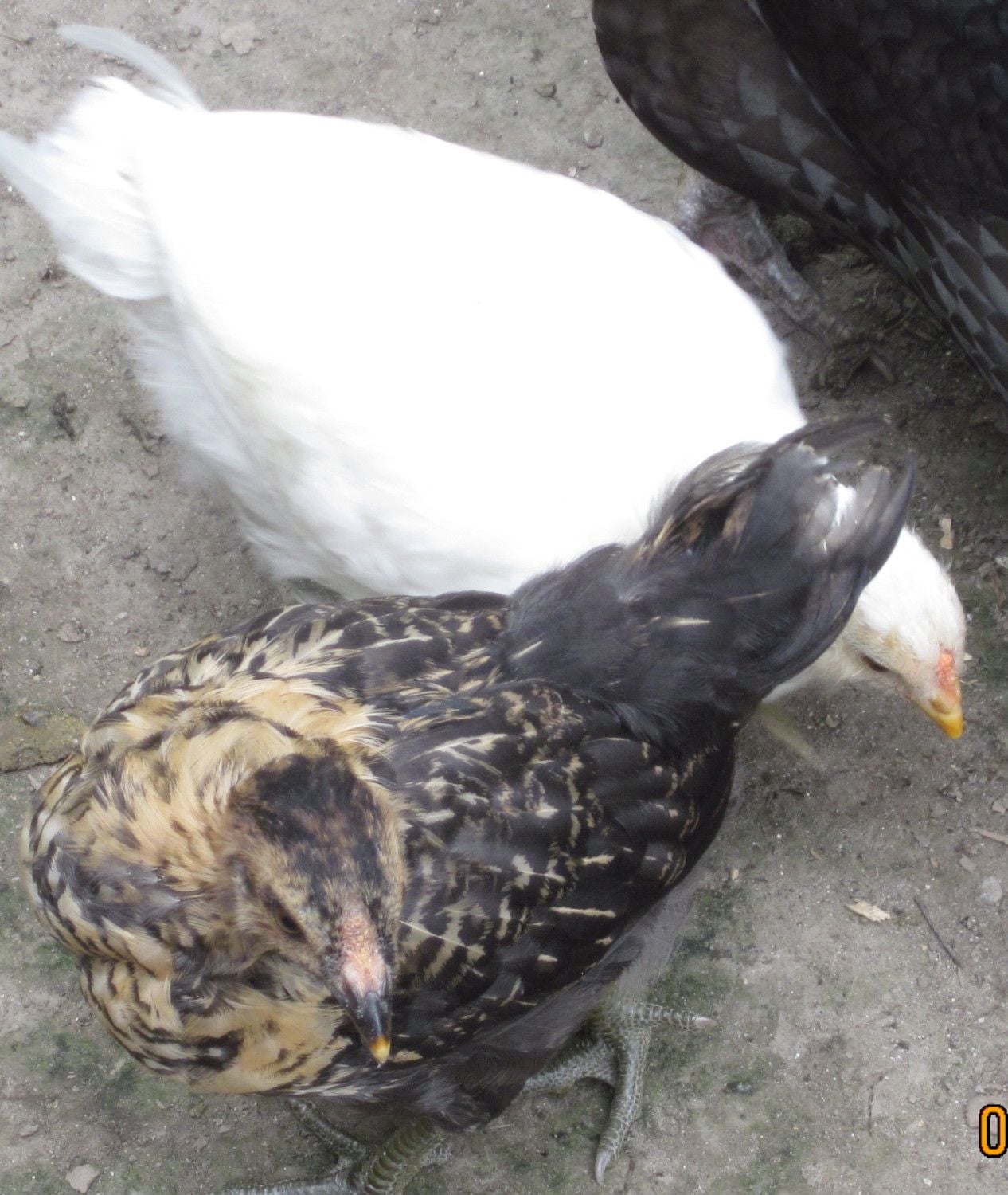 Now Boo has never really had much of a tail as a chick, and had booty feathers before her tail came in, small and exceptionally curved. Boo is also built like a football. I haven't really seen this on an EE yet, so I'm curious if she might be something else, or if she's just weird. Isis on the other hand grew pretty fast and evenly, and while feisty as a chick is now one of the middle to lower ranking chickens, with Boo being the roughest now. Neither of them really have any spur growth at all and only just this week they started pinking up in the face; which I can't tell if it's from hormones or from the 100 degree temps with 85% humidity we've been having. I have my fingers crossed for girls!! I already have a dapper little silkie roo in the coop.