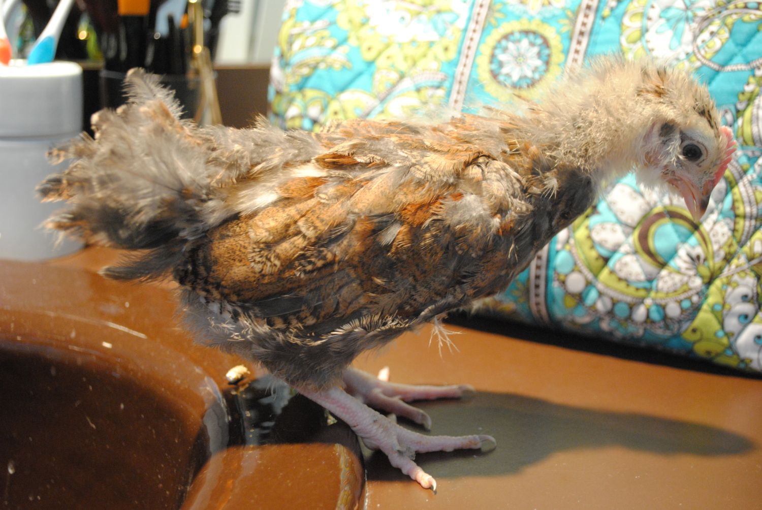 In this photo, my finger on the right side is holding back the feather tract that runs down the spine. My fingers on the left are holding back the wing and the side "pocket" feathers on the chick. These saddle feathers are not visible unless I spread his other feathers out!