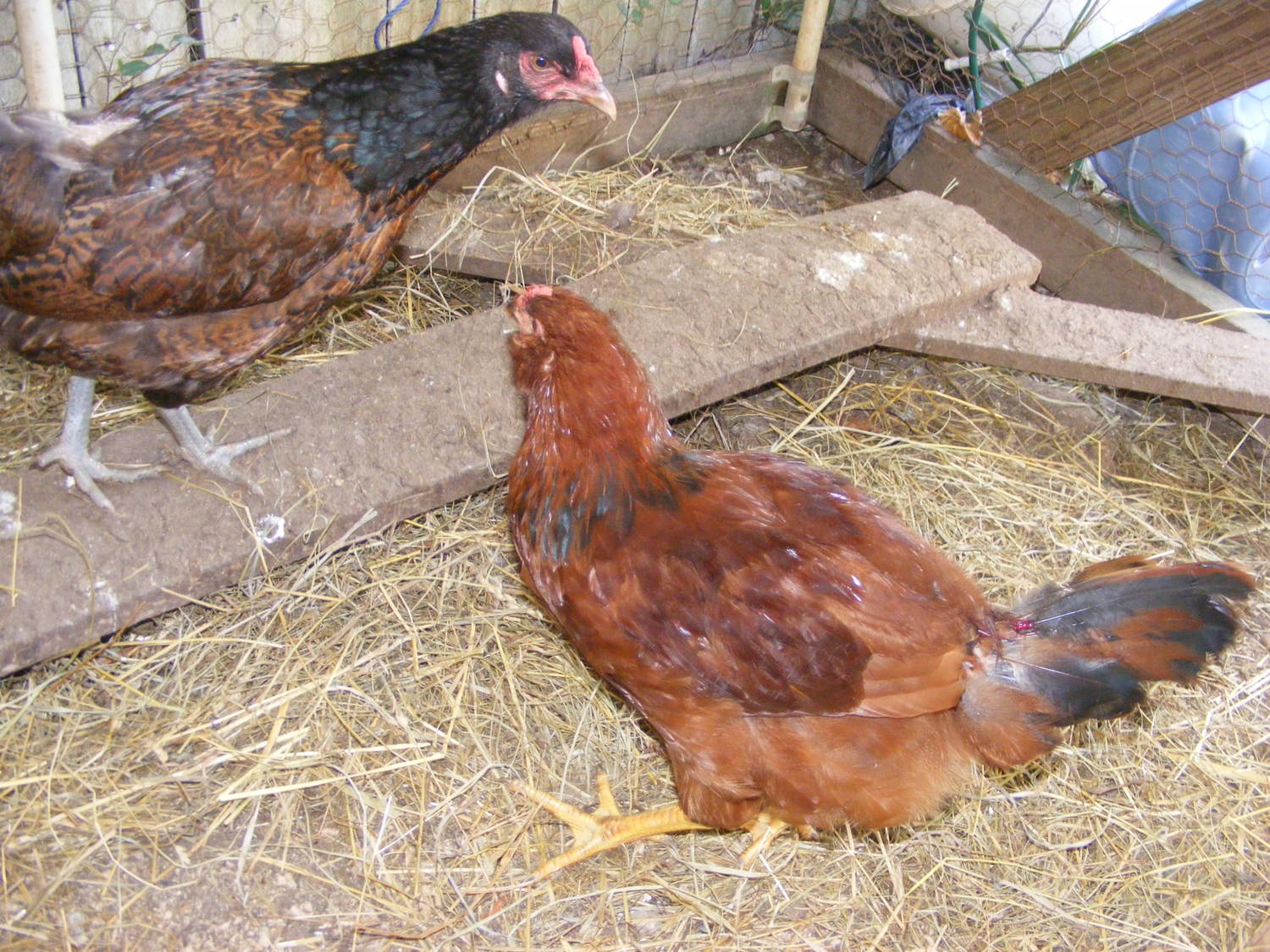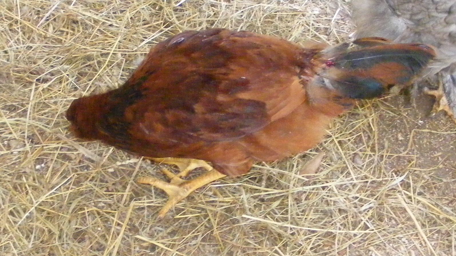 I do believe that is a roo, my NH roo have that darker red on the wings. Some roos are slow to mature, others not so much. I have 2 GNH roo and one is HUGE and the other is not. I put the smaller one in with the pullets to growout. Maybe without another roo for competition he will bloom. He also looks like he has split wing, but he does not... so hoping that some BIGGER spaces his wings will tighten up. I HOPE SO, I SURE NEED A NH ROO.Ok, I got some better pictures today of the chick we hatched from our flock that I still haven't figured out what gender is. The chick is 15 weeks old now. The comb honestly seems half single and half pea. It has not gotten any bigger like my other roosters when they were that age. Yes it is red but I have an EE hen (the one I think is the genetic mom) that has the same red coloring. I have seen no hackle or saddle feathers. It gets picked on by the adult chickens and they have pulled out the feathers around the tail. There was a little blood on it today from a pulled feather which you can see in the photos. I am really still thinking it's a pullet. It certainly sounded like one when I picked it up earlier today. It was not happy with me at all. I was going to try to pick it up and get closer pictures of the face/comb but it was struggling too much for me to try to handle it and the camera at the same time.