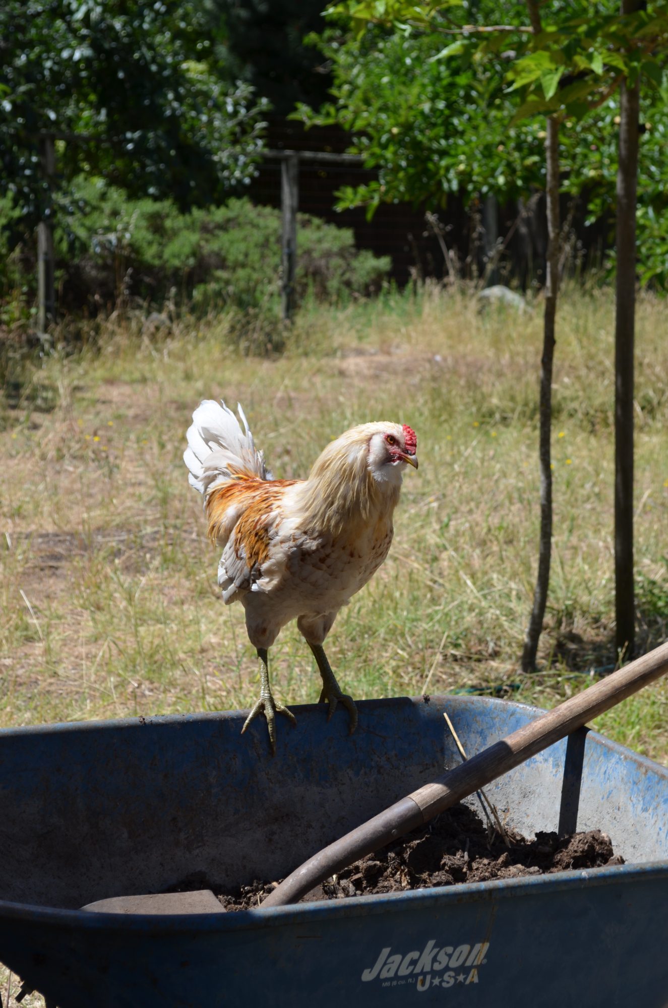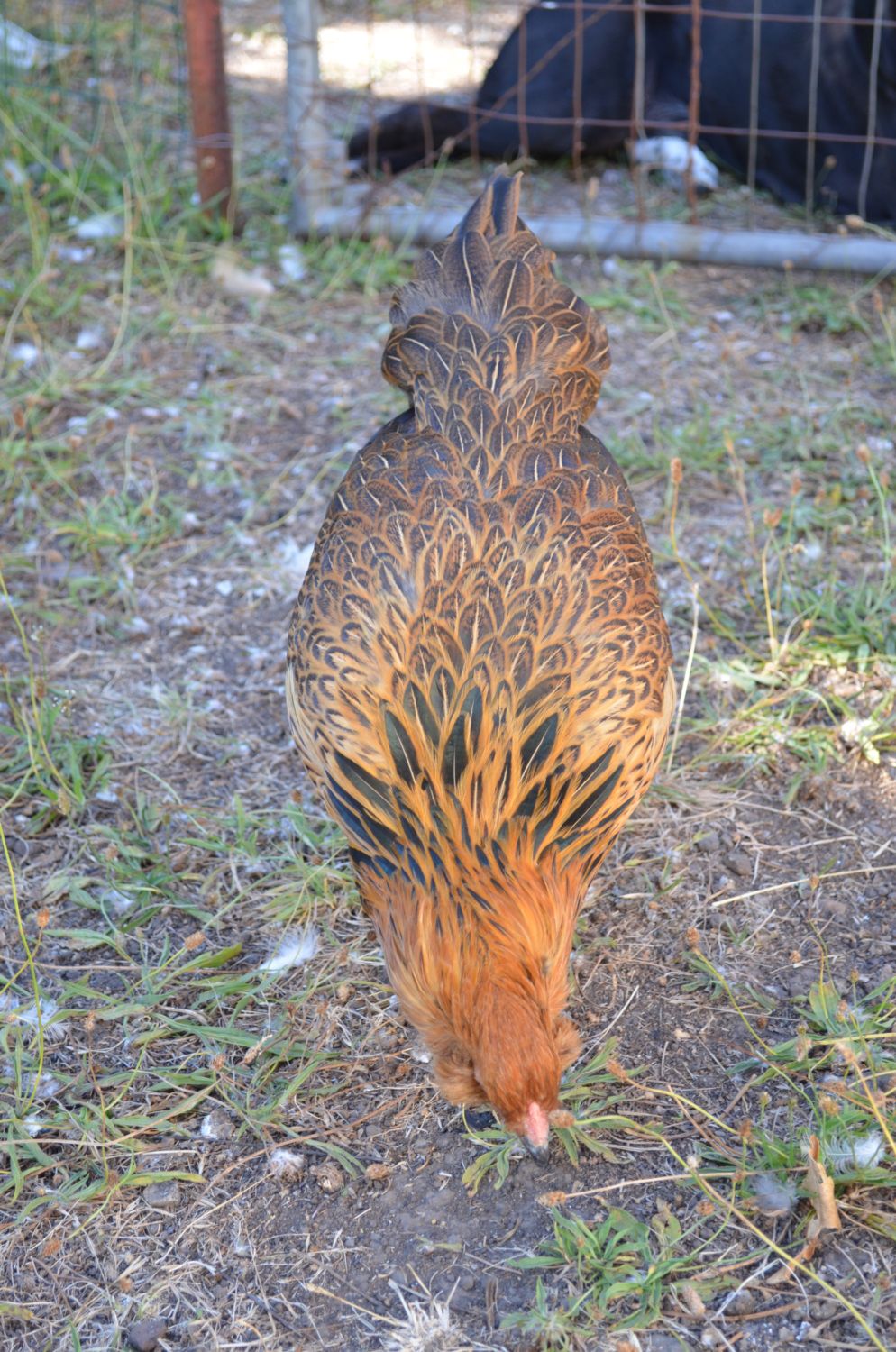 Same guy at about 15 weeks. Too much crowing for our small property, so we found a great home for him. His saddle feathers looked like orange glass in the sun. We miss him, but not the 4 am alarm calls with updates every 30 mins. I wish roosters came with snooze buttons!