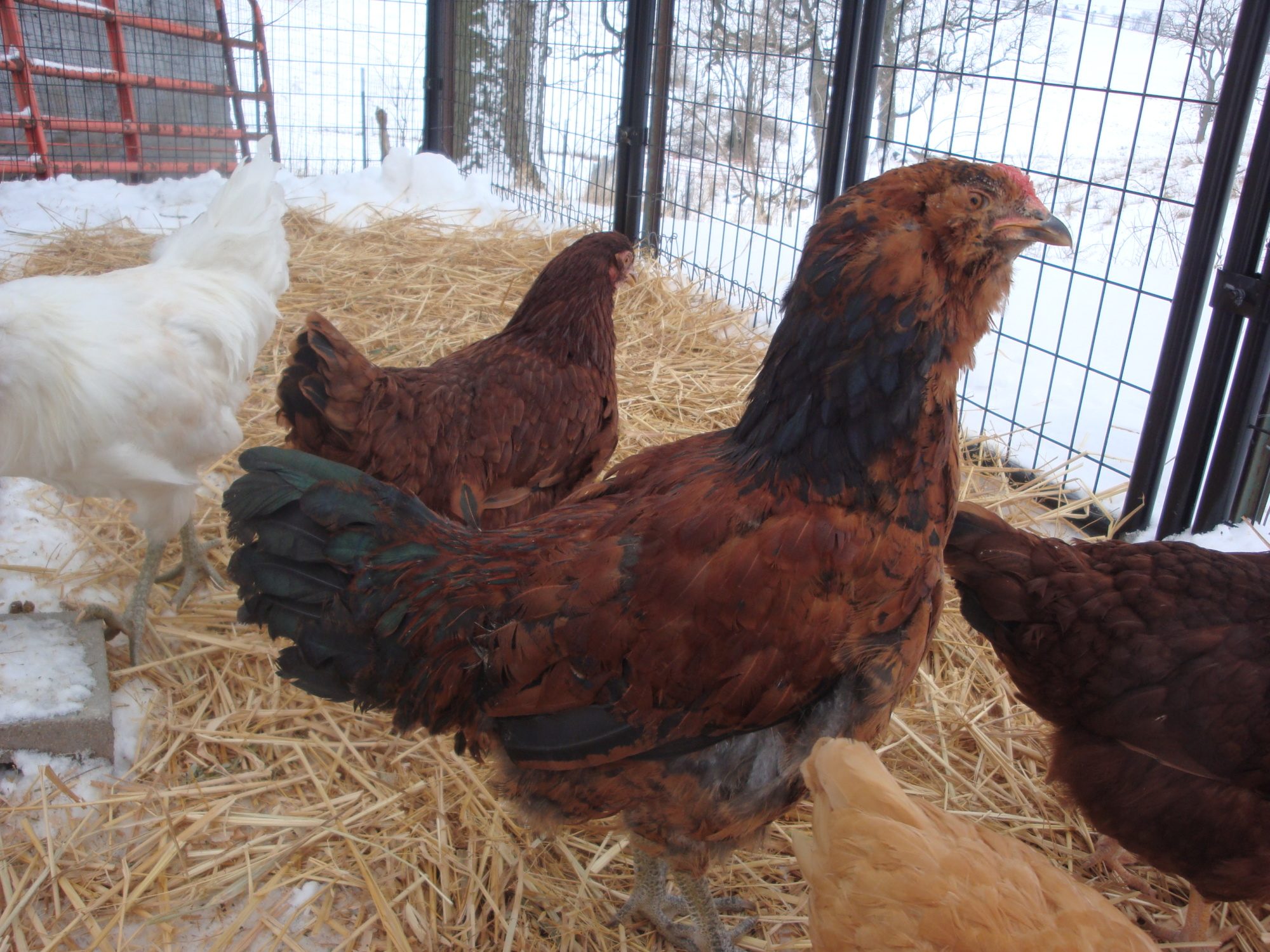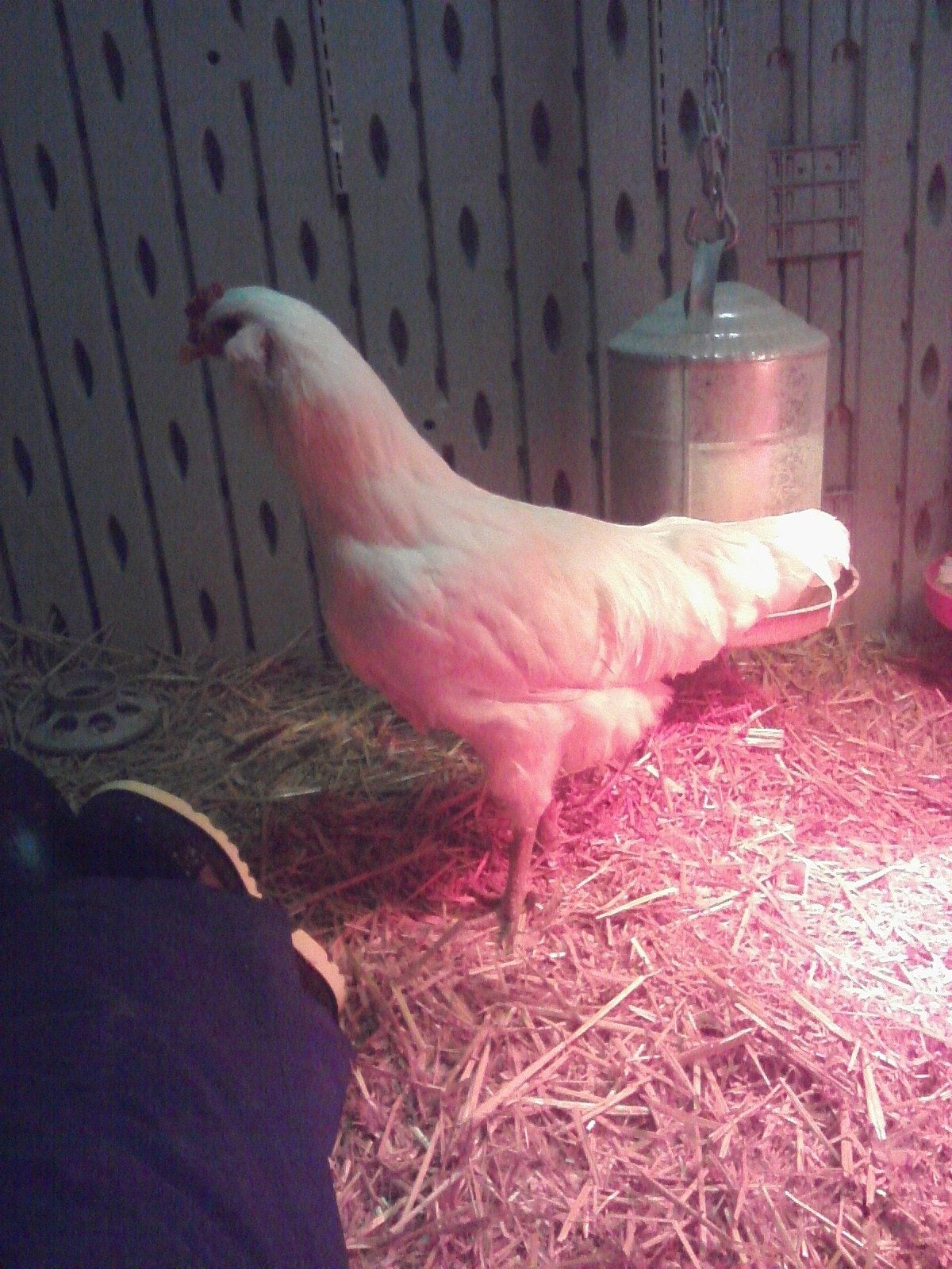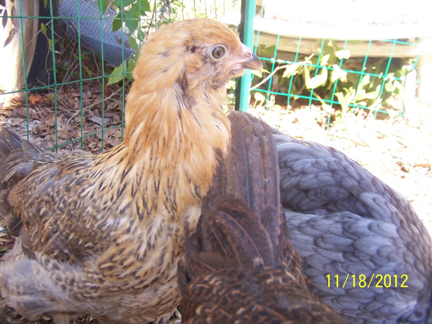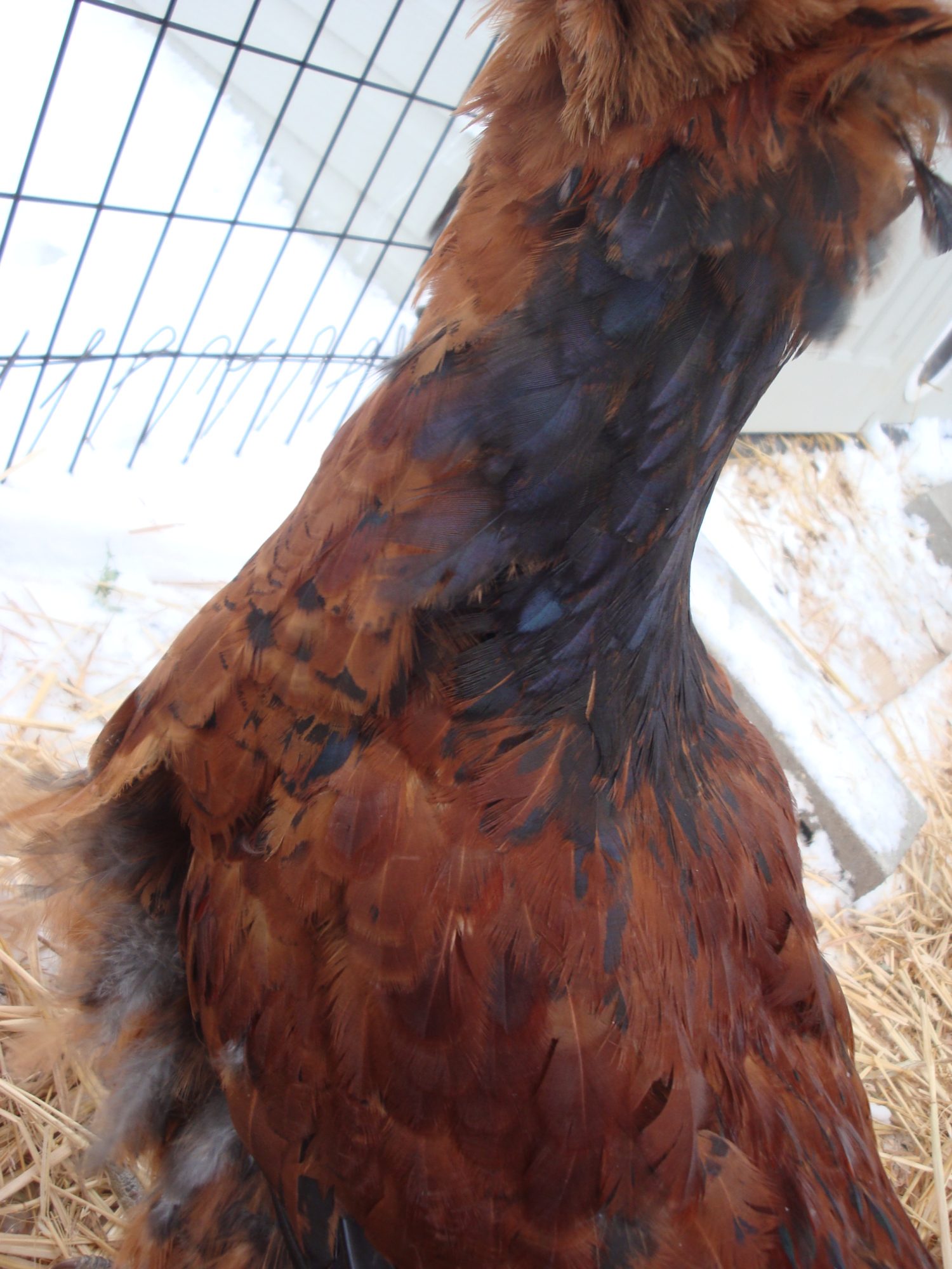 This was her around 4 months. I think Adelaide is just developing the dark pattern on her neck feathers, which makes them look pointed. A rooster's will be thin and sharply pointed. I think saddle feathers are easier to see if they are present.