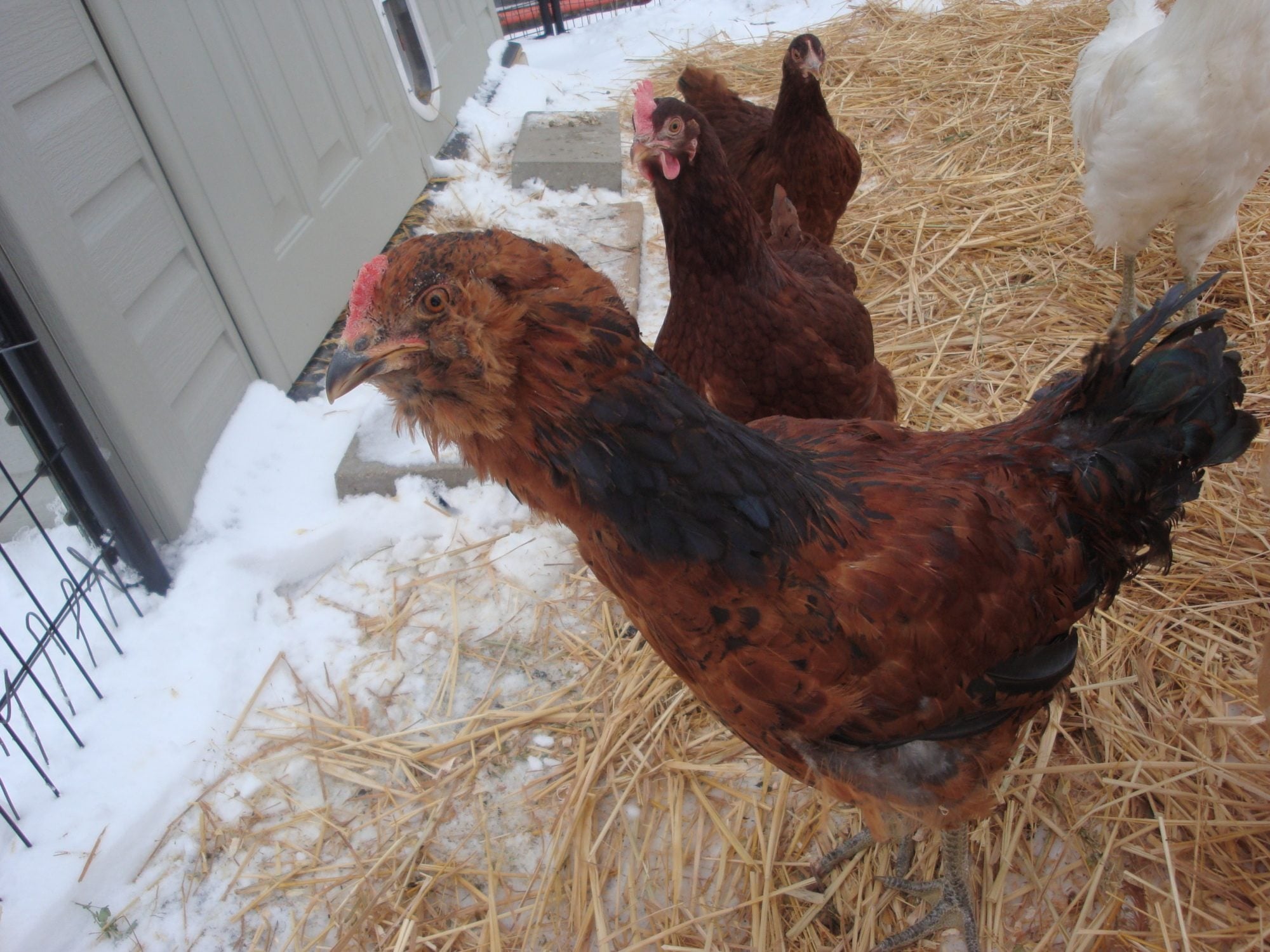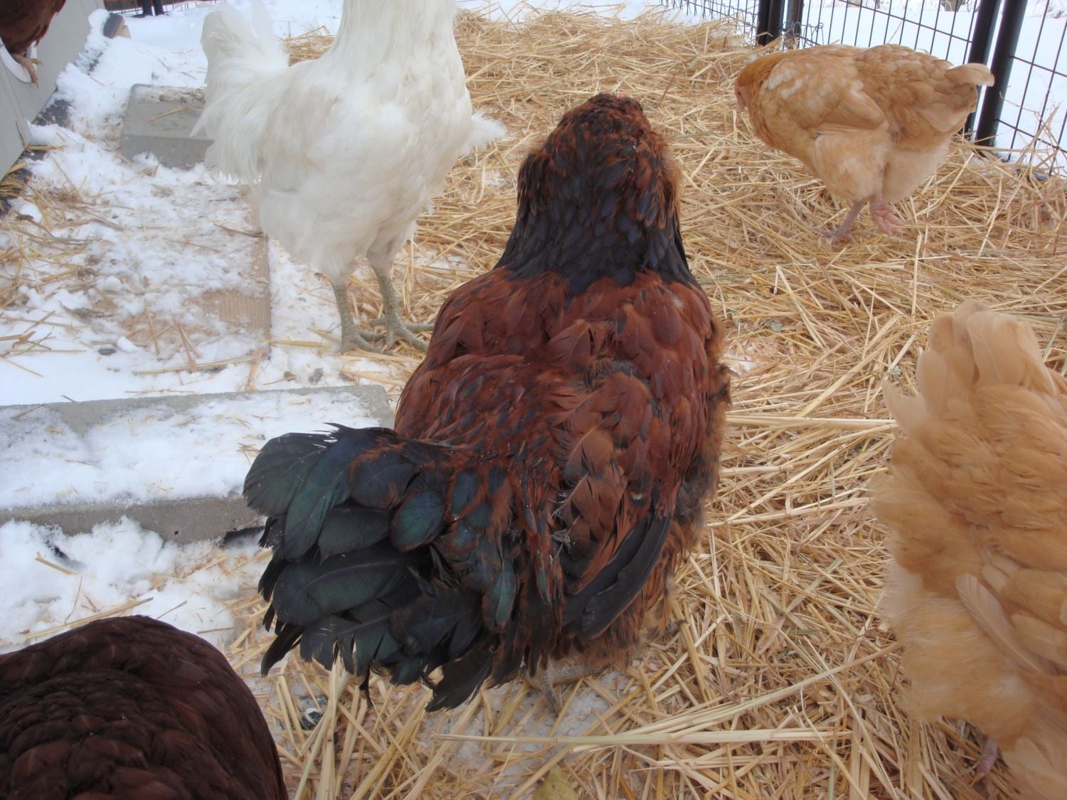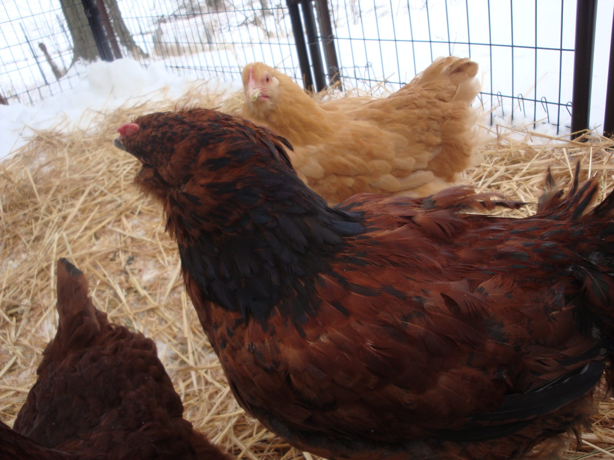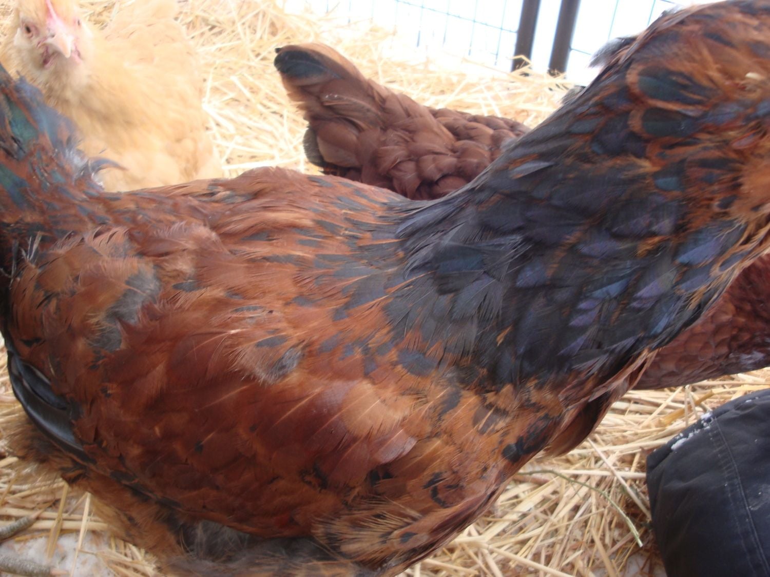 This was her around 4 months. I think Adelaide is just developing the dark pattern on her neck feathers, which makes them look pointed. A rooster's will be thin and sharply pointed. I think saddle feathers are easier to see if they are present.