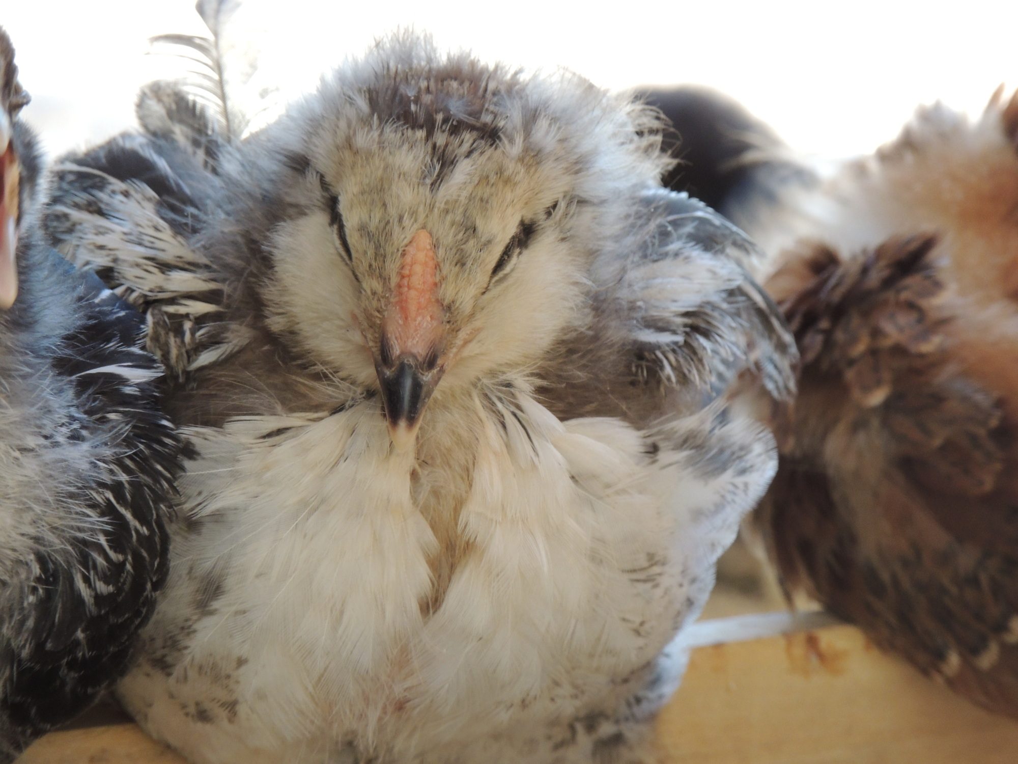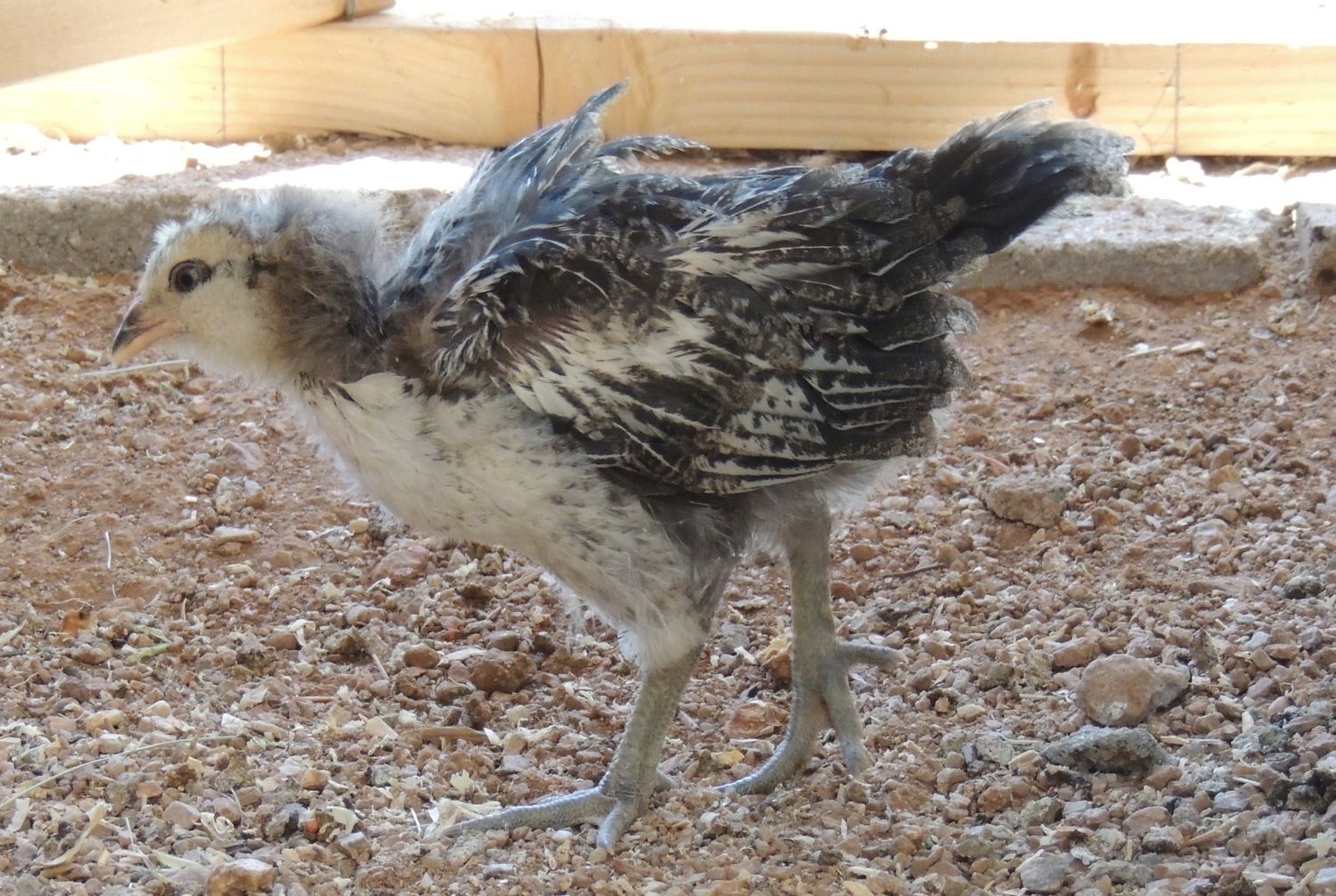 Wishing4wings, thank you so much for your input. "He" is about 5 weeks old and he's so different from my other two. Unfortunately, I can not keep roosters and now that I have 2 out of my original 10 that need to find a new home. Disappointing on multiple levels, we'll find a good home for both of them. Thanks again!I think you are correct and have a pretty little boy here. The last picture is a perfect example of the "3 rows of peas" that can sometimes be seen on cockerels as early as 3 weeks. In the next week or two (I'm assuming he is 4-5 weeks) the comb will turn bright pink.