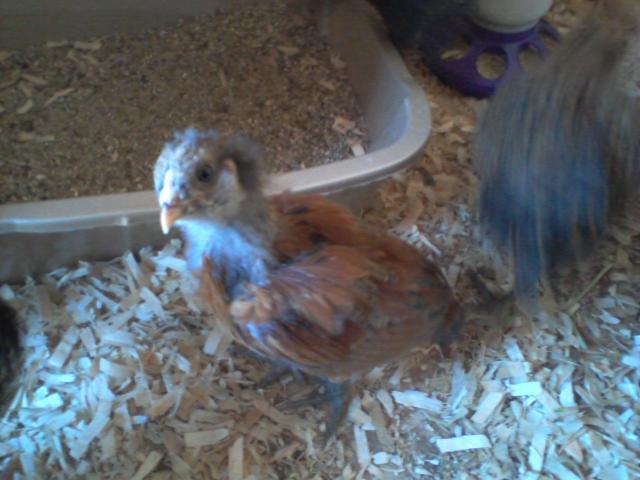 Quote: Right now it's just a blob, not really something I can see peas on. One of the girls has a definite pea comb, and I'm thinking Basil is going to have a single comb...it doesn't look anything like the pea comb or the blob that Ginger and I think Curry have (I think it is Paprika that has the defined pea comb). I will have to try to get another pic for you later this weekend. S/he holds the tail down, I don't know that I would call it curved, but it is down at an angle. The two brown girls hold theirs parallel to their back and the black and white one holds hers the same as Ginger.