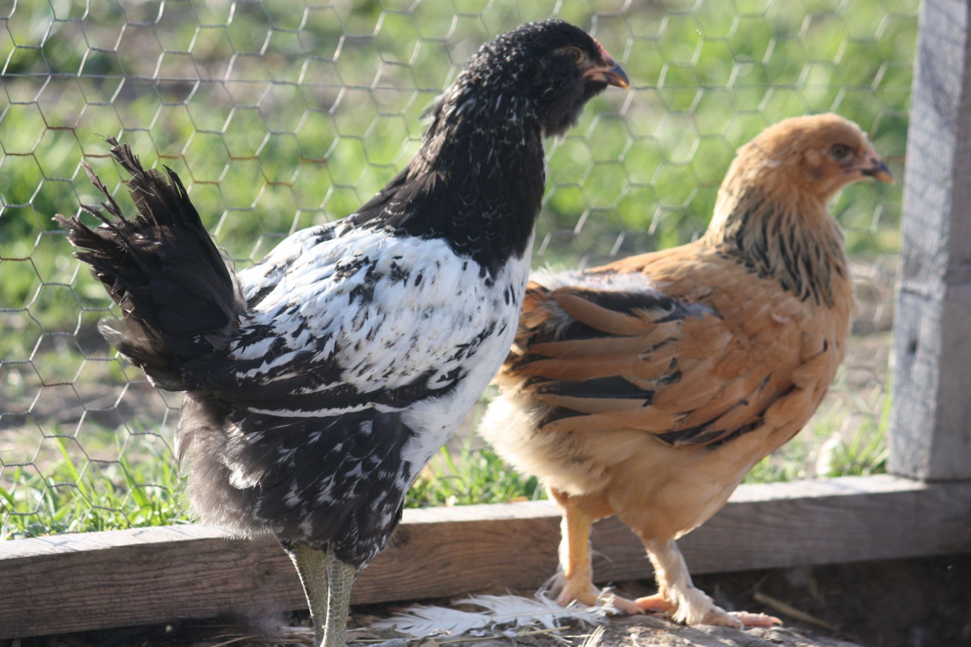 They are both about 7.5 weeks old. This first one I am quite certain is a cockerel:Here are a couple more Easter Eggers needing to be sexed - which would be the second time they were sexed since they were purchased as pulletsThey are both about 7.5 weeks old. This first one I am quite certain is a cockerel: