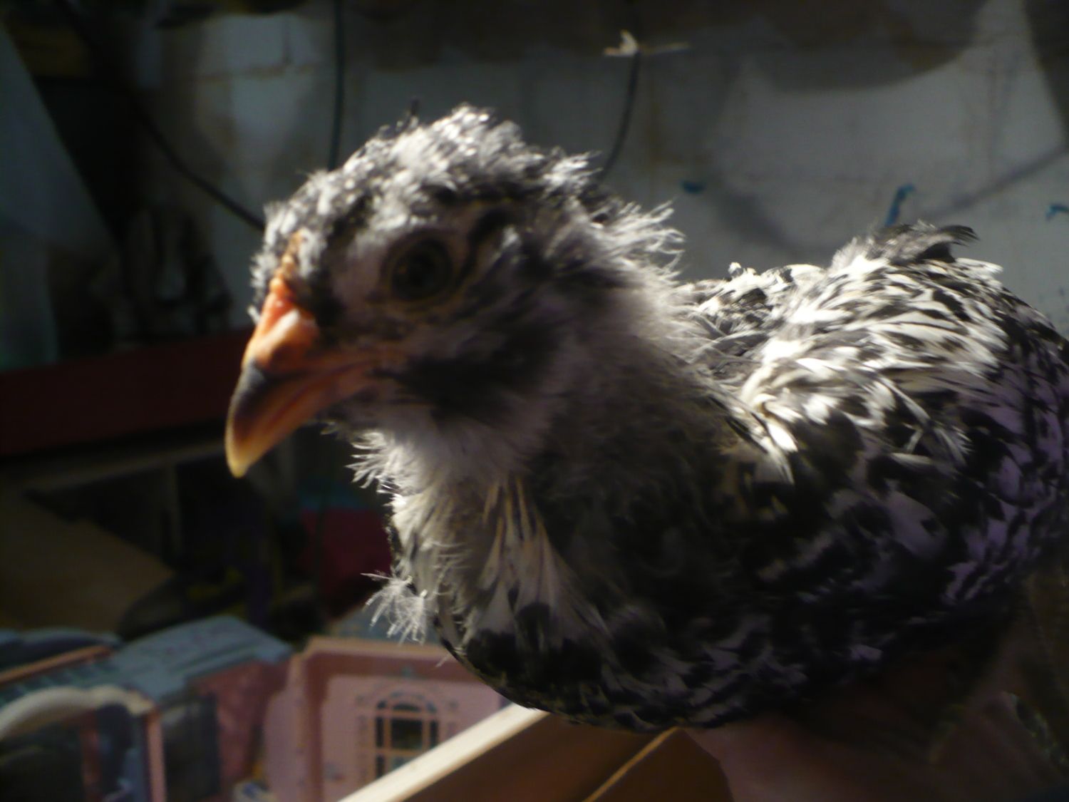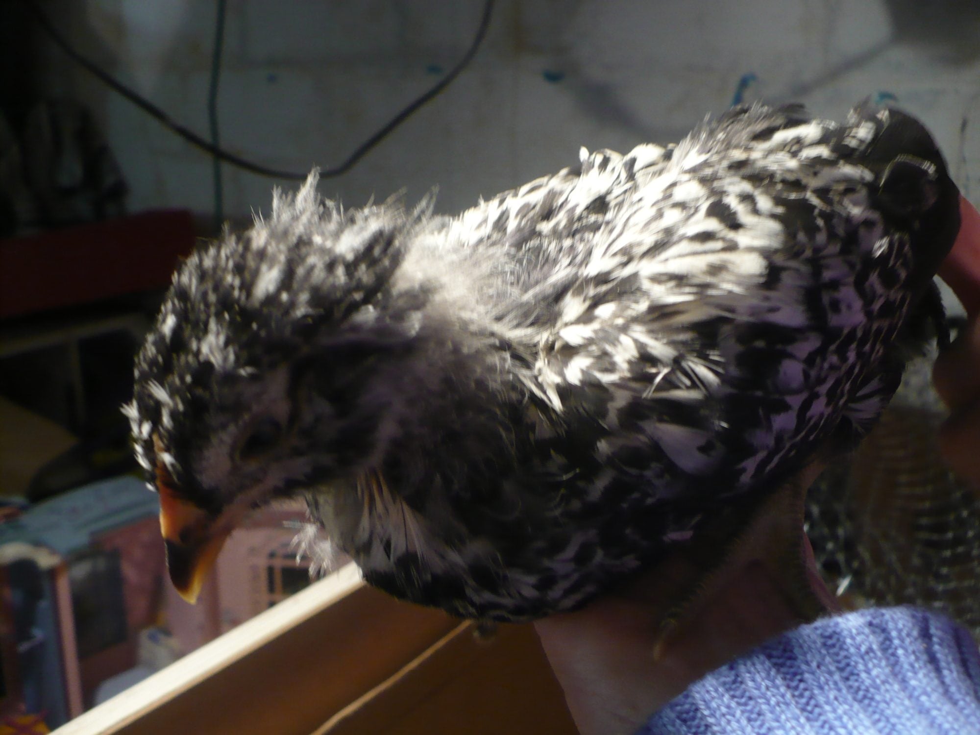 Smokey' s tail feathers are starting to bend down,and are iridescent purple stripes. It's a boy,isn't it?