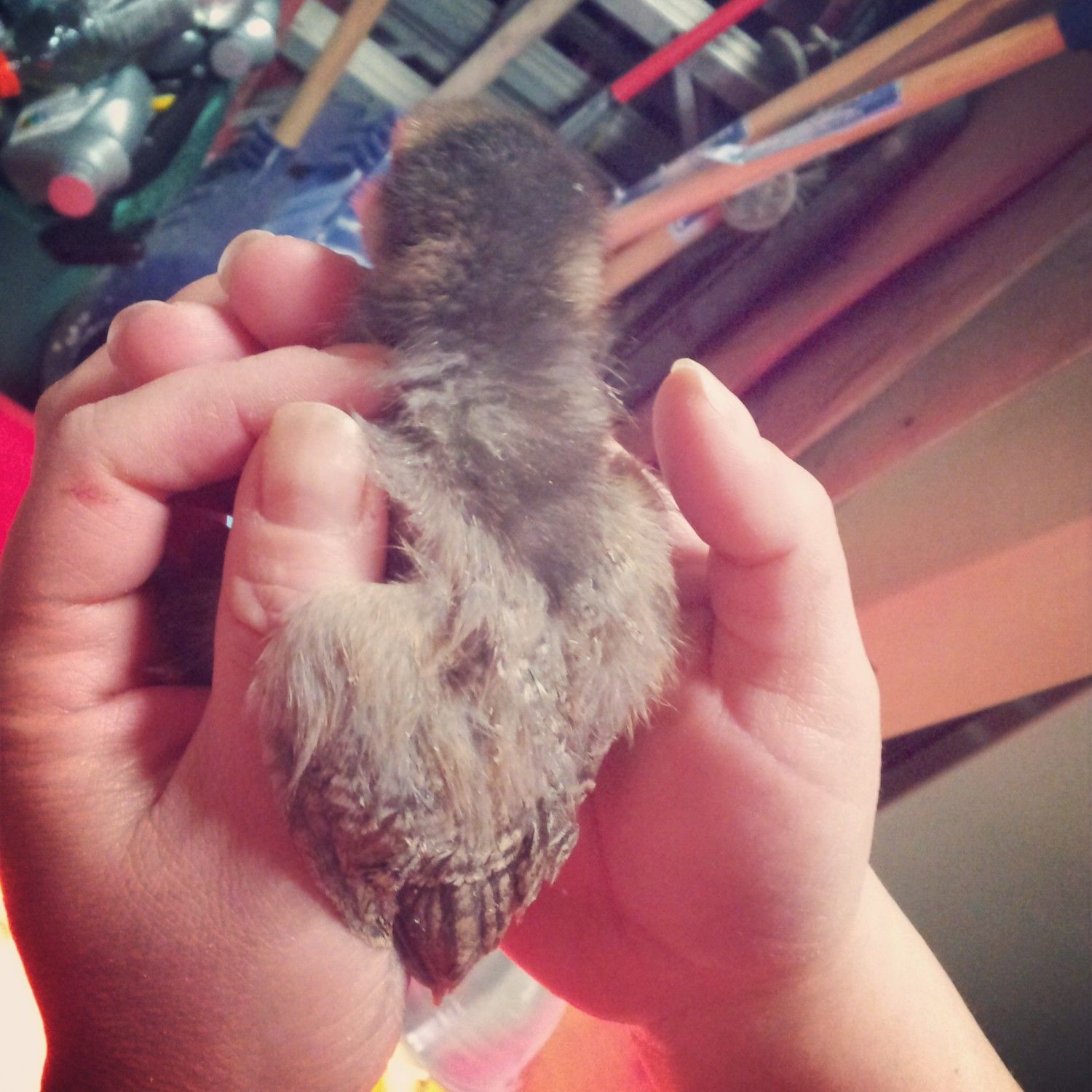 So I guess, my guess for her age would be about 9-10 weeks?? We got her on April 4th. In those pics I'm assuming she was about 1 week maybe? She's my only Easter Egger so I don't have much to compare!