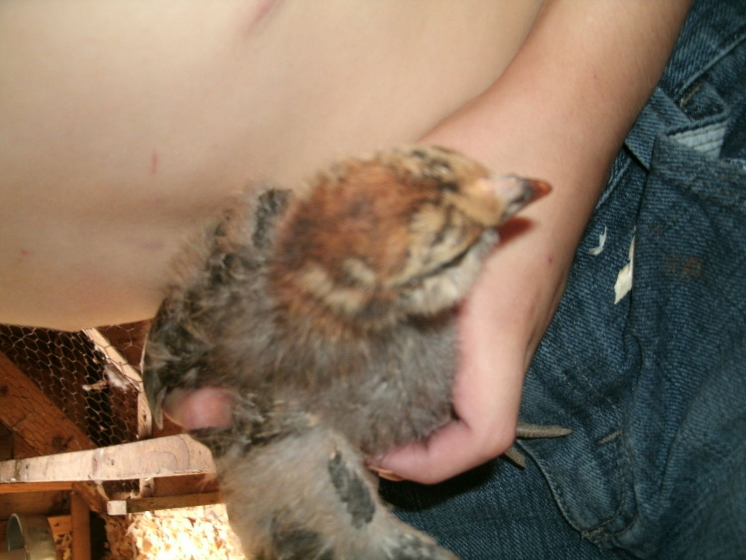 Crossed beaked chicks usually get worse as they get older. You can try giving her vitamins. Ours only lived to be 6 months old because they are hard to feed. They have to scoop their food from a deep dish. They can't get food off the ground or out of your hand. They are the sweetest chicks because they learn to depend on you. Good luck.I know they are too young to really tell boy or girl but I've got some photos of my 2- 2 1/2 week olds. If the slightly raised comb is any indication (and I didn't get one chick twice), I have three girls and three boys. I also noticed my one light chick has a crooked beak. And that is the one I was going to keep no matter what gender (because of her? color) but now that beak makes me wonder about any chicks that would come from that mating, assuming the crooked-ness doesn't get worse as she? gets older and affect her health.