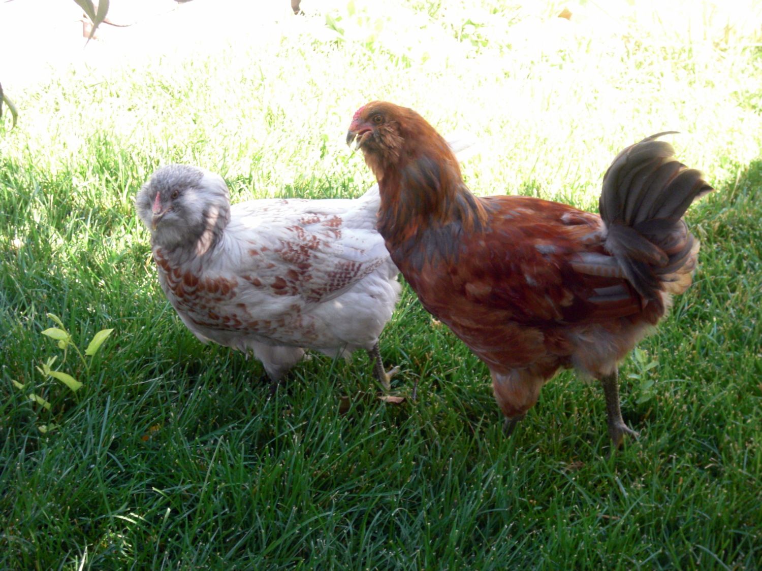 This has been interesting reading. We went away for a week and I think one of my girls may have turned into a boy! We have 2 EEs: Fluffy (red) and Bluebell. Our little crossbeak Fluffy is looking a bit manly to me. What do you think?