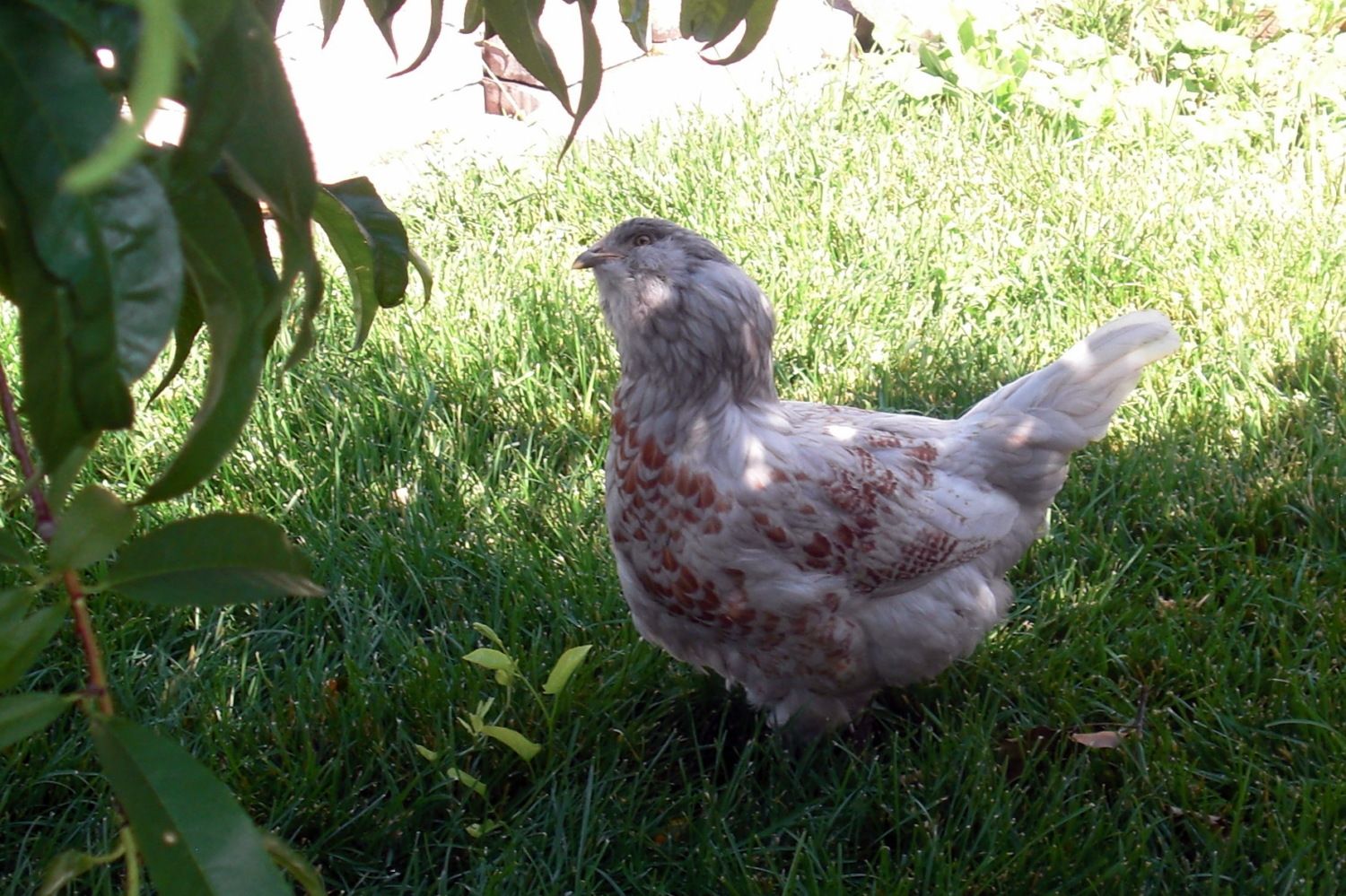 Moose looks a little like the Farrah Fawcet of chickens. She has this full head and neck of fluffy feathers. But last night she looked a little like her hackle feathers were a bit pointy. Not to mention she is much larger than Hoot. Although several of the others are the same size.