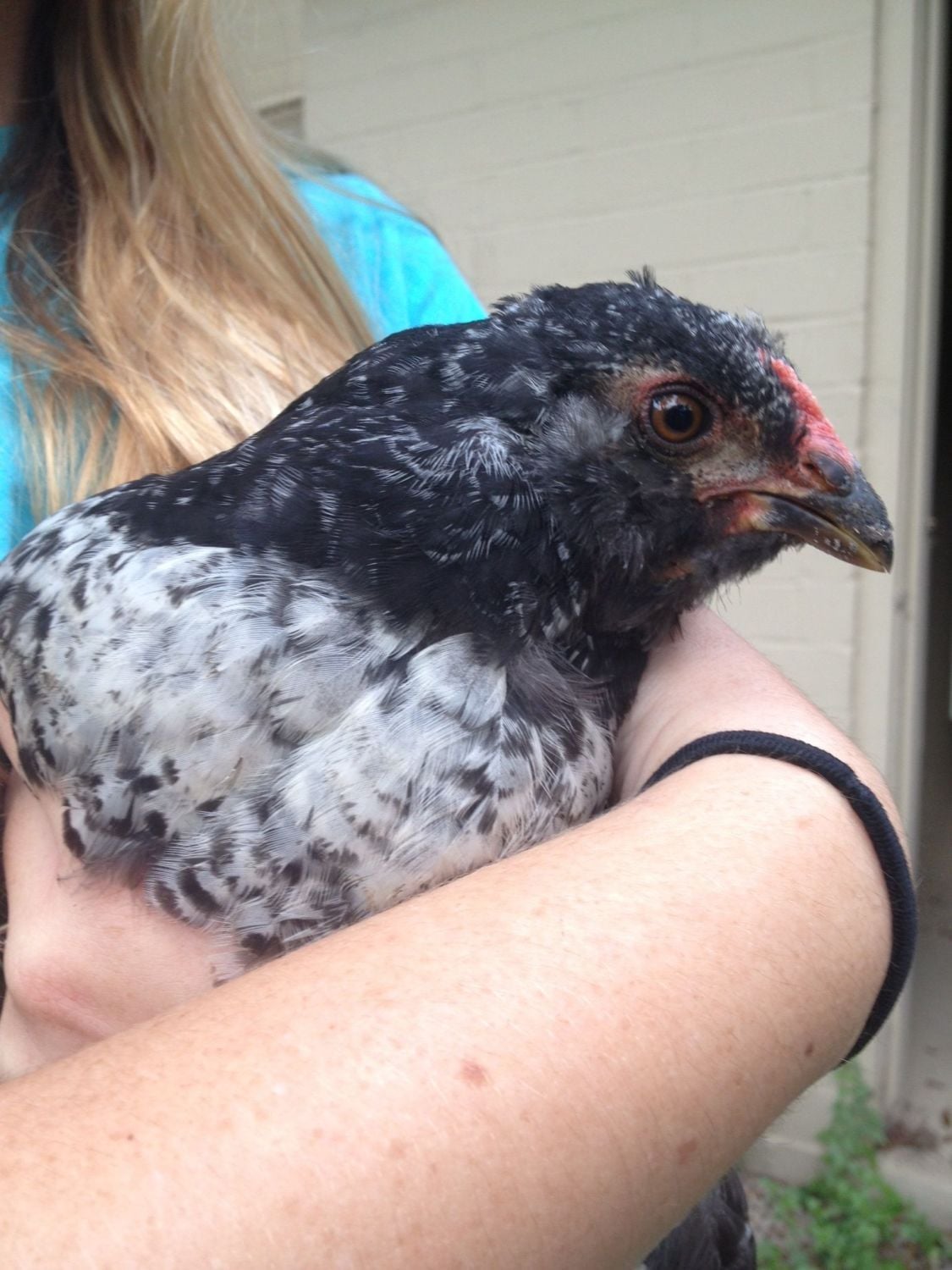The comb is a single row pea comb that is pretty bright, but hasn't gotten larger for about a month. I checked saddle feathers earlier, and there are some pointy ones starting to come on. Looks like my dad will be getting his EE cockerel this weekend to go ith the pretty little hen he has.