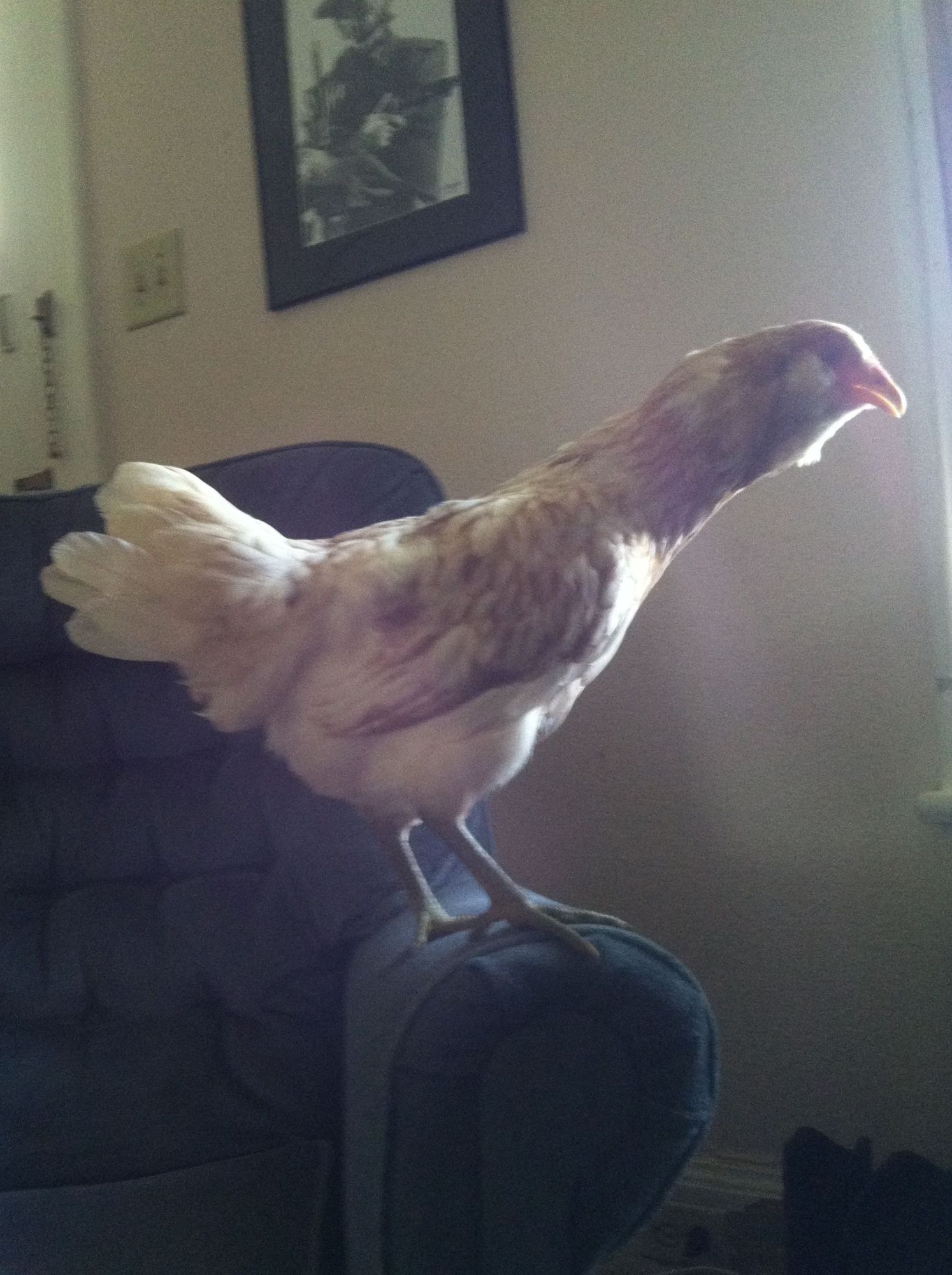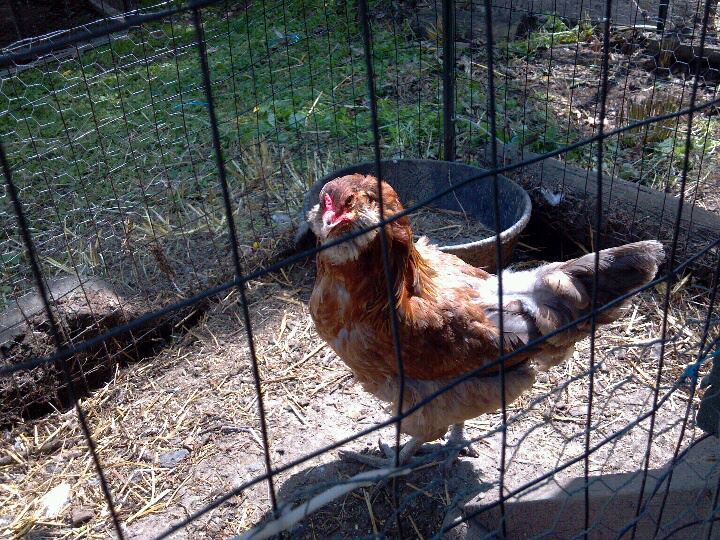 Angie's also got a huge narrow tail and they've both got extremely red combs that scream young rooster to me though they're both going on seven years old and have been laying eggs for over six years now.