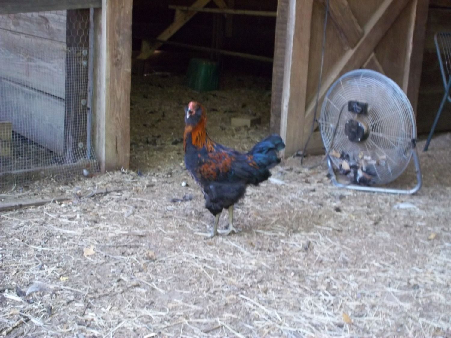 This is Conan, one of the 2 17 week olds. His tail is really pathetic. He had two ratty long feathers, but one has fallen off and the rest aren't much to look at. He's really beefy.