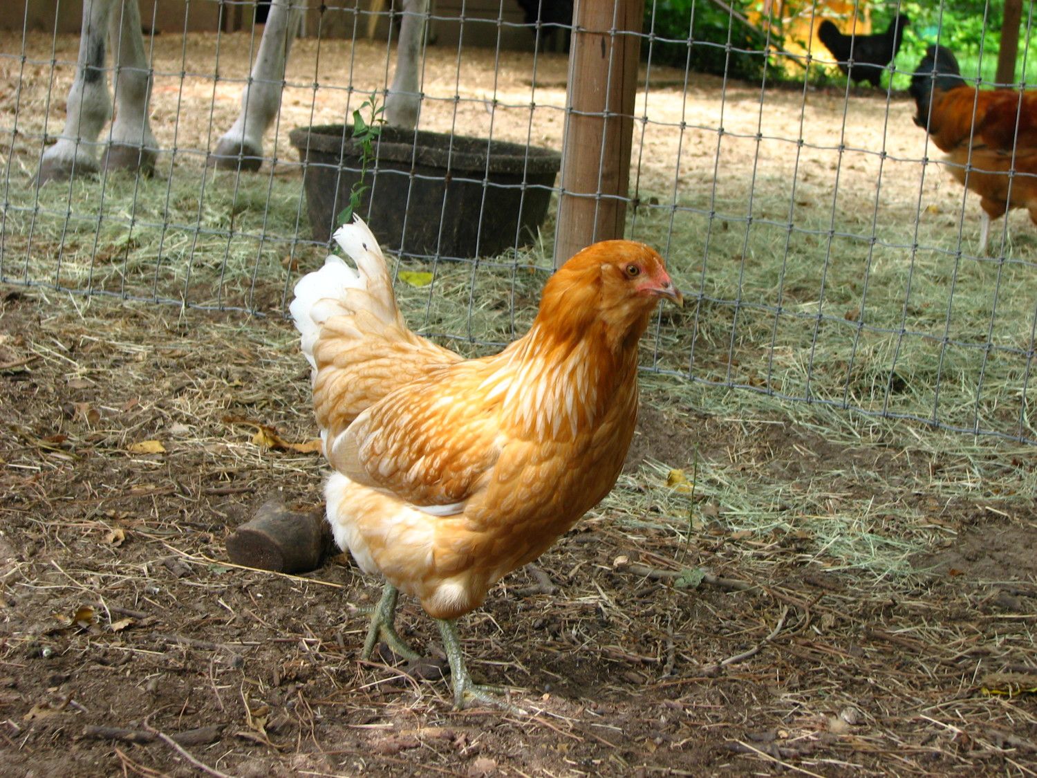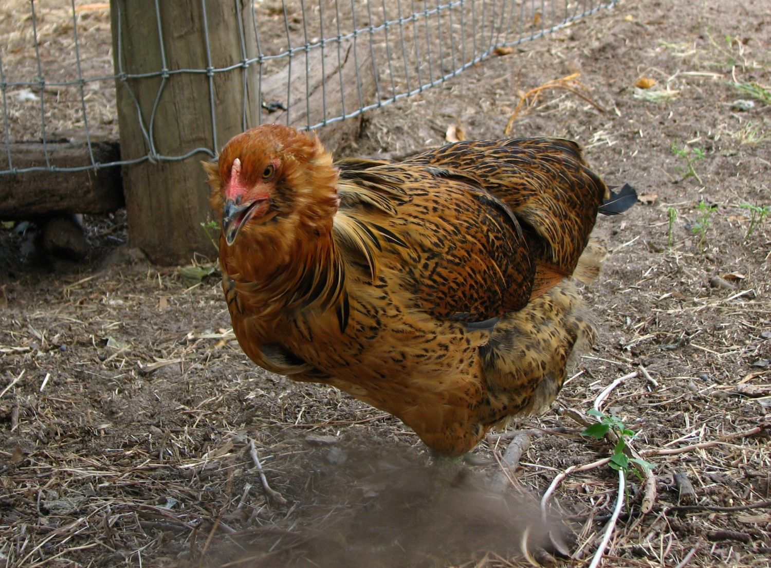 And this is Gypsum - she came in my order from McMurray this year. Was supposed to be one of my New Hampshires, but it was obvious what she was pretty early. Can't hide that beard! She does have the black underpinning that the other NH's have, so maybe one of McMurray's hens got a little something on the side <g>