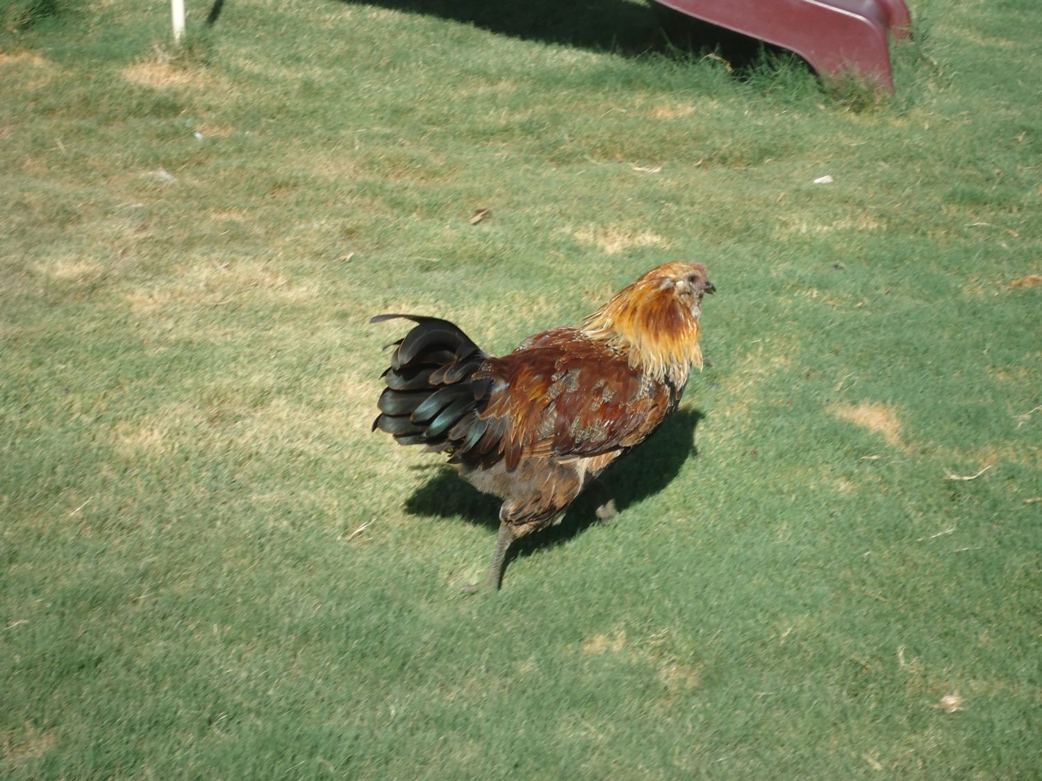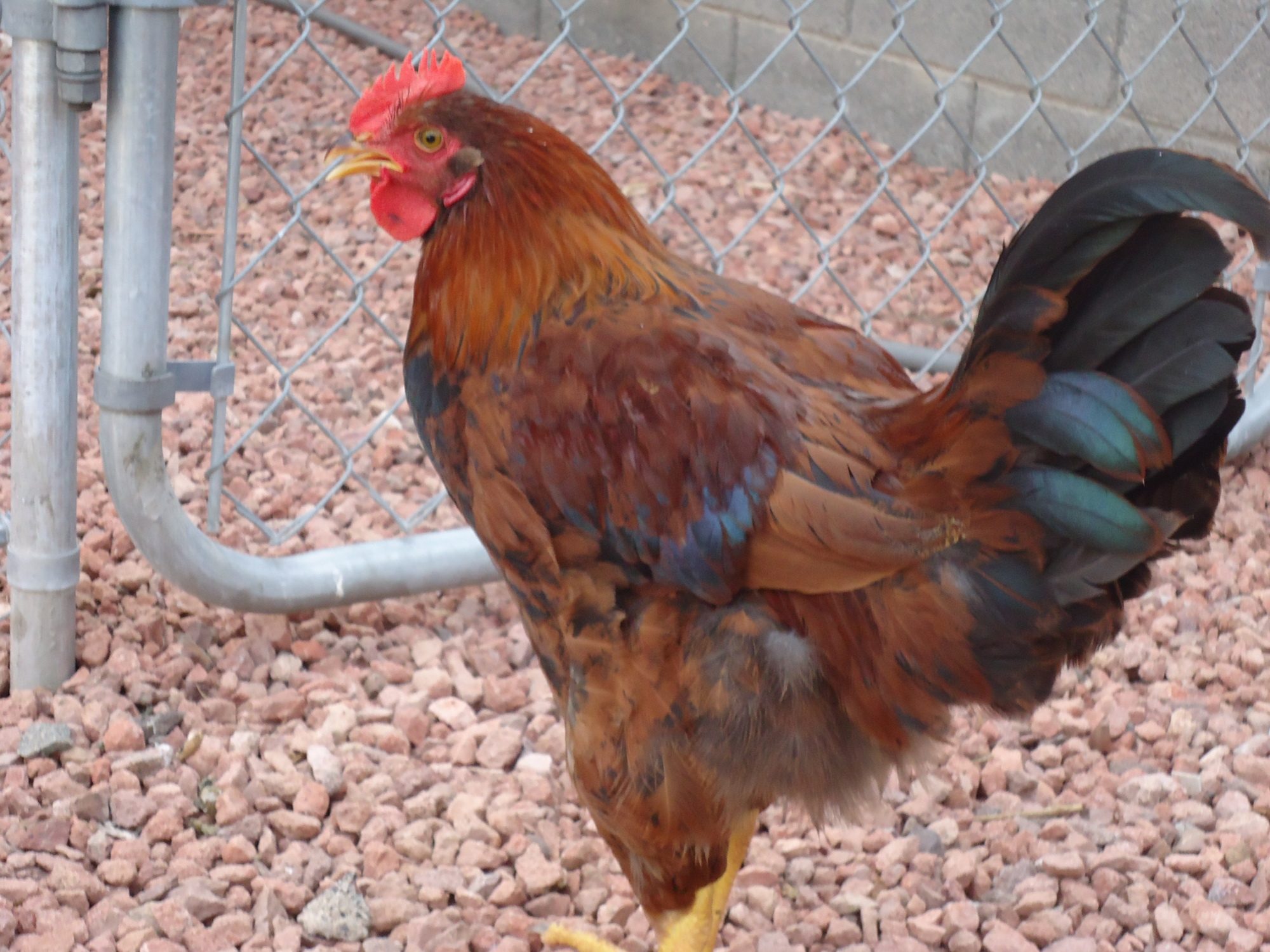 Here's my EE roos! (I suspect the one with the large comb and wattles has some RIR mixed in)... They were both so pretty! They live on 2 acres with tons of hens now... Lucky boys.