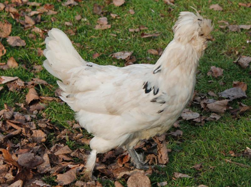Isn't she darling? Her mother is full bantam Ameraucana and her dad is a crested Easter Egger (with silkie blood in him as well) so she has a bit of feathering on her legs and 5 toes.What a cutie! I don't know much about breeding and genetics but would crossing a Silver Spangled Hamburg create the paint color?I got similar colour with a few of my dominant white girls. Not so pretty, but similar. I'd love to have something like that!
