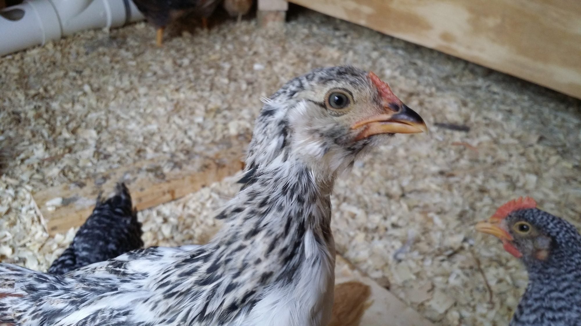 Quote: That red comb is the final indicator for a cockerel. (He already had the wide comb and patchy color pattern.) The change is pretty clear, and since you have the other pale pullet combs for comparison, you can really see the difference. It's a Patrick. Thanks for posting the update! He's cute. Can you keep him? Does he have blue eyes?