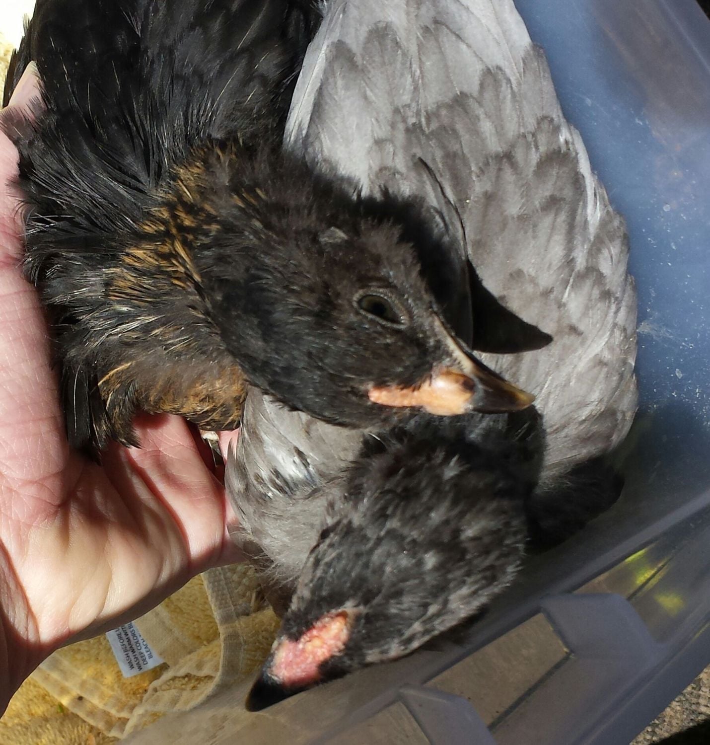 Solid colored chicks are harder to tell. The comb does look prominent though. But I agree, you need to wait a little longer before you can tell for sure.I need help sexing one of these. The dad was an ee/cochin mix and the mom was an ee hen. They came from green eggs. The blue one has a definite 3 row pea comb...I know he's a rooster. But his hatch mate has a pea comb that seems pretty big to me. They're 4 1/2 weeks and I'm really hoping the black one is a pullet. I had to help it hatch and it almost didn't make it.