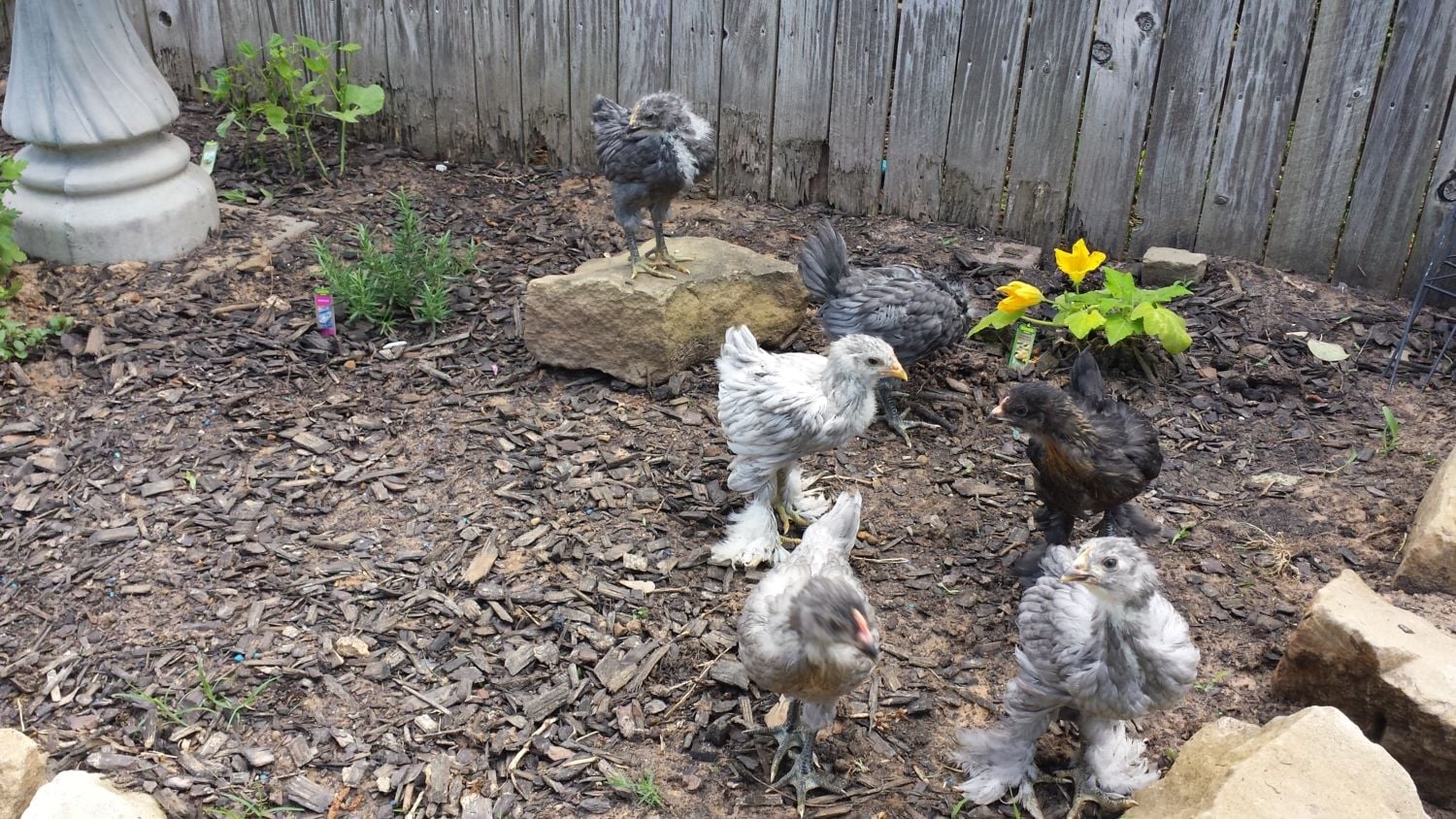 I know that at 3 weeks, these are too young to sex but what goes with the difference in their tails? The light colored one and then 3 others what are dark like the top one barely have a fluff of a tail and then 2 of them, (both dark), have the define tail feathers sticking up !! They all have the greenish dark legs