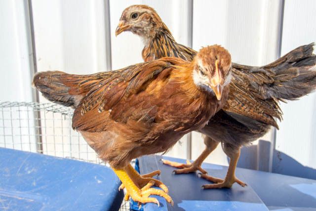 This is the suspect roo in front of a pullet.