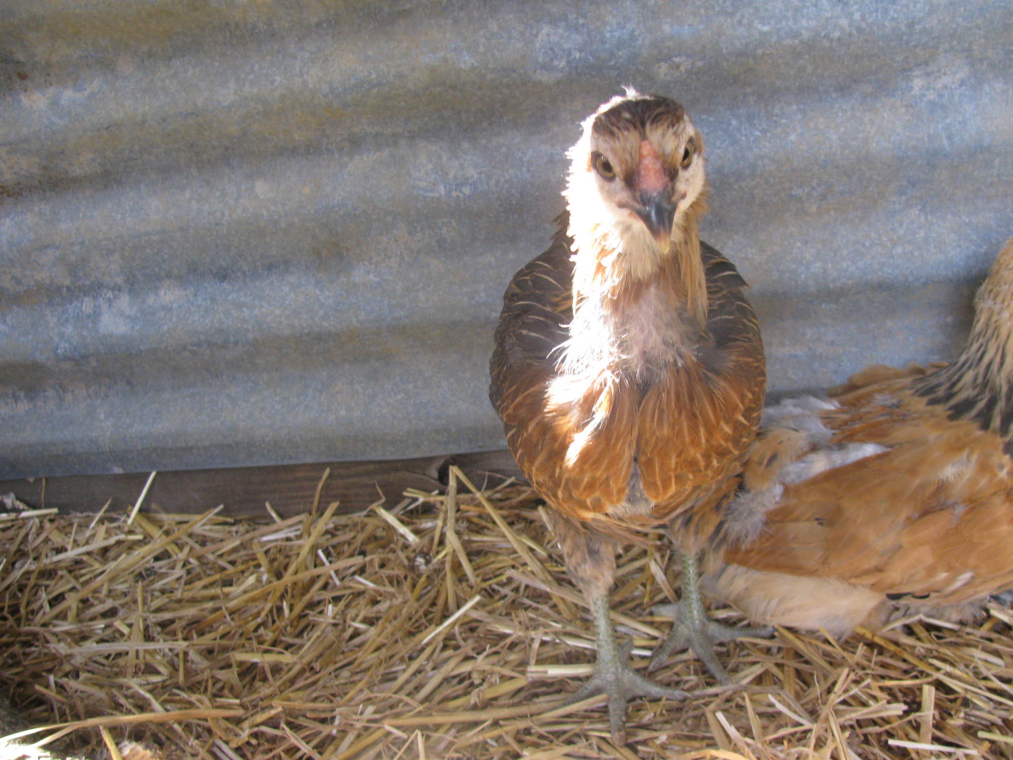 Chick 6- Darker in color, but the color is more even on head and shoulders. Smaller comb.
