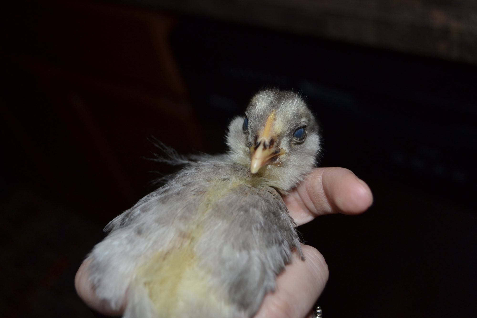 Oh, she's 10 weeks old I think and is Colombia colored. She's been outgrown by the gold sex link who is a week younger than her.