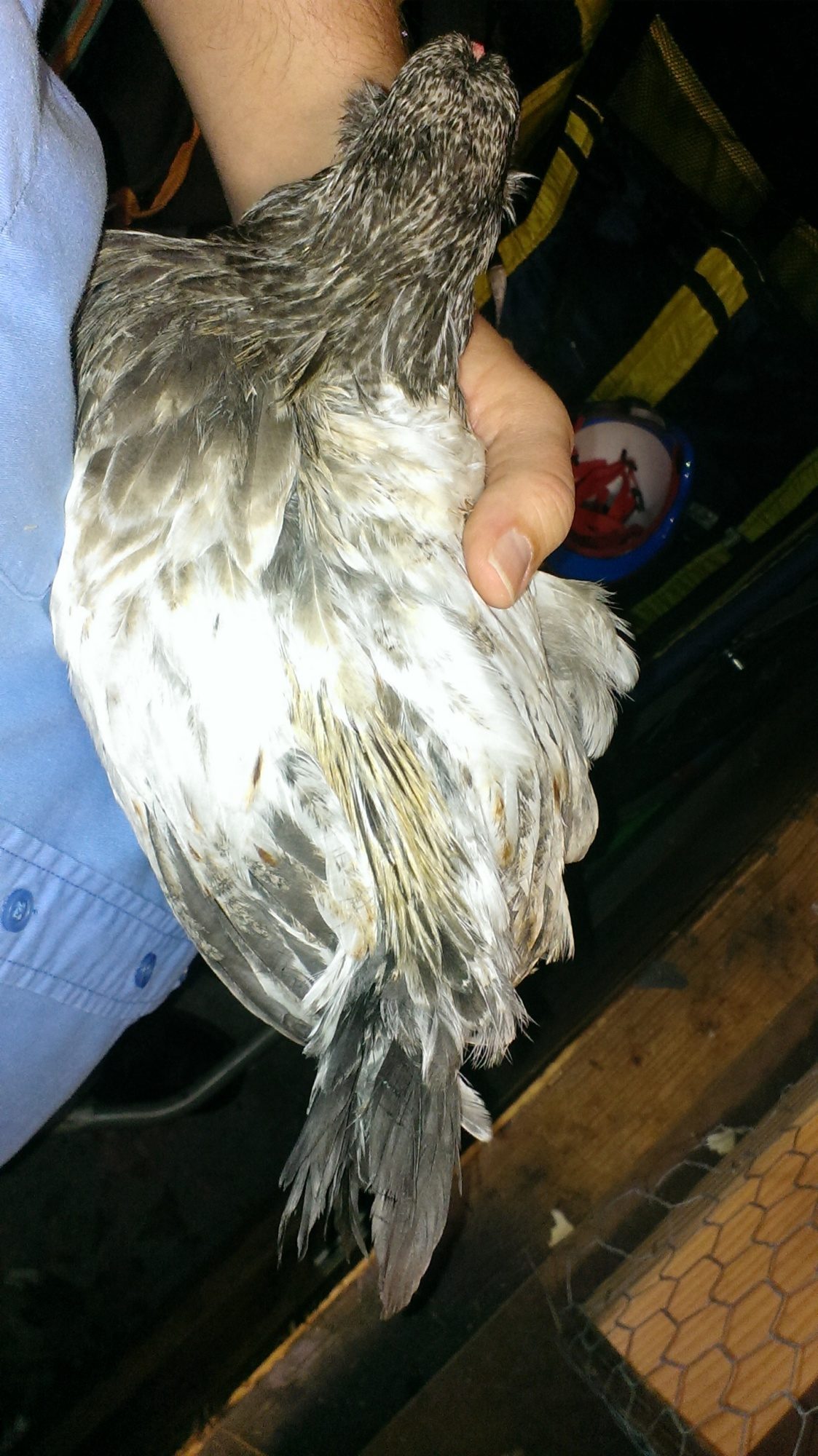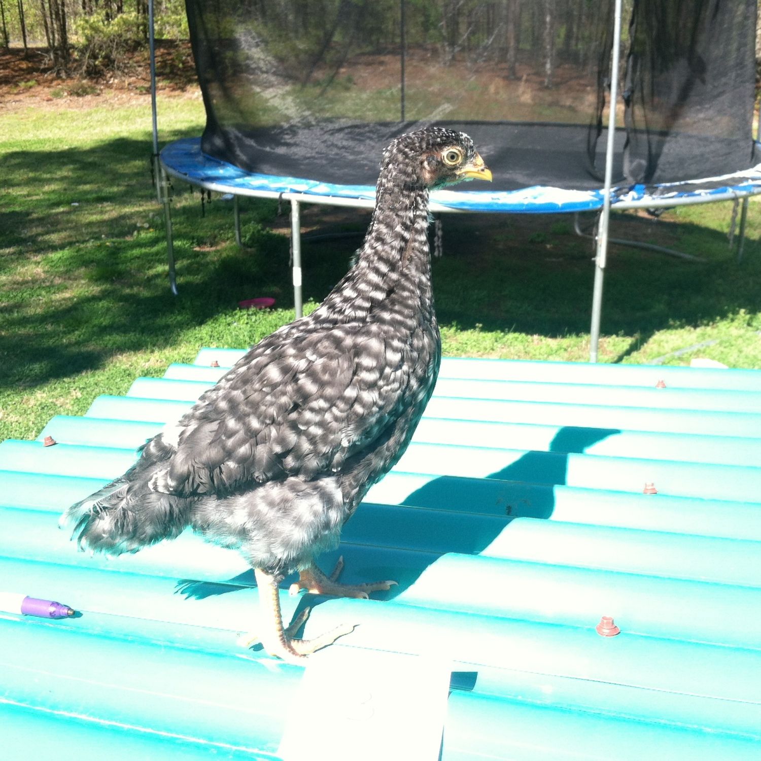 Now can someone tell my 3 week old splash laced wyandotte roo he is NOT a bad a**, and to quit trying to pick a fight with everyone else in the brooder??