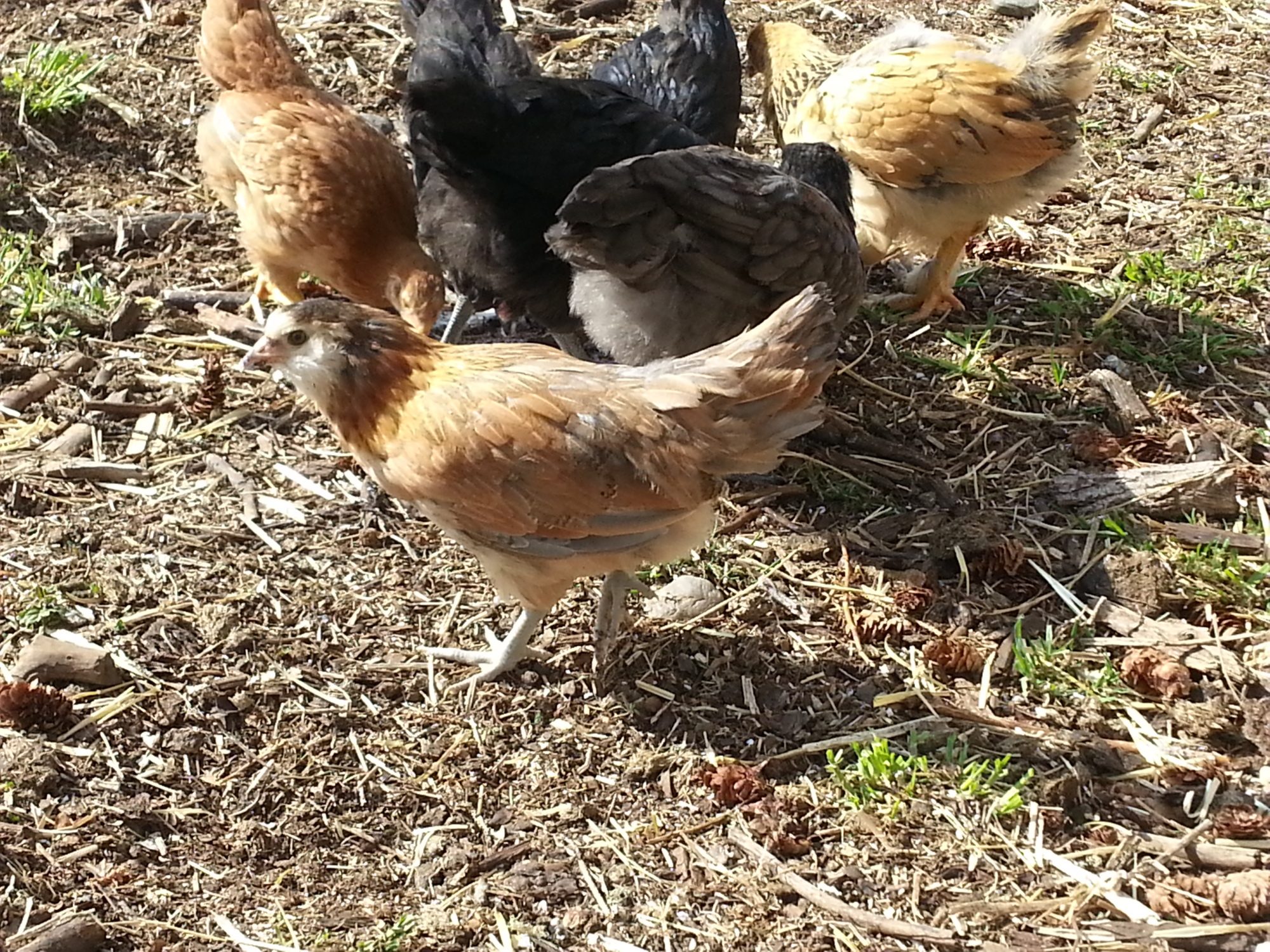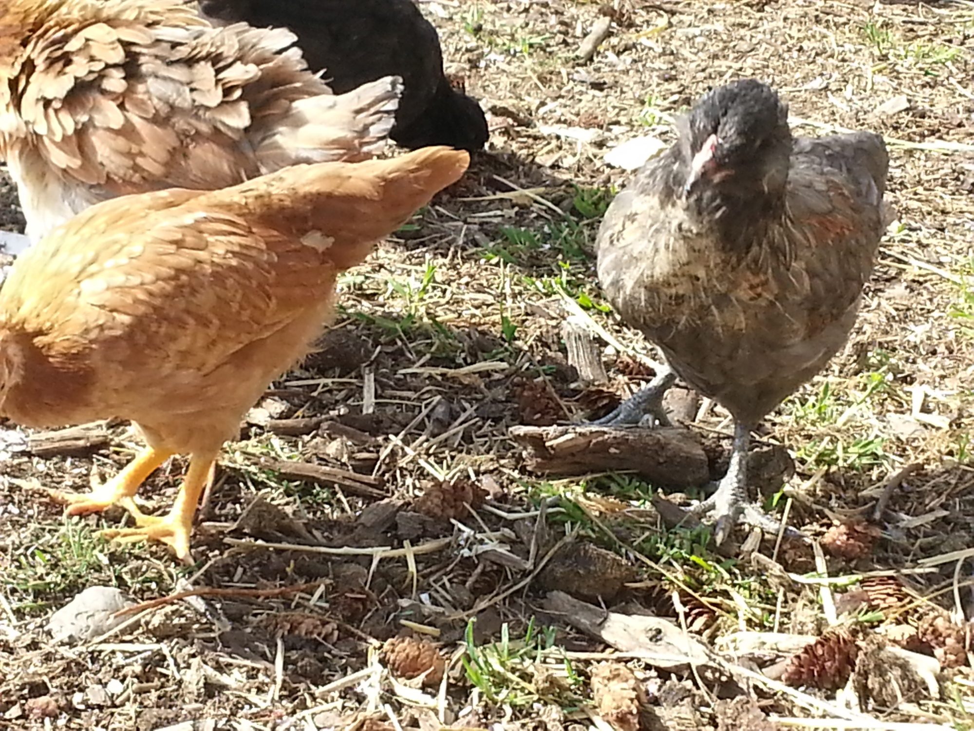 My true EE mixes: Sheldon- has always been larger, and now has red on the shoulders- I'm thinking boy