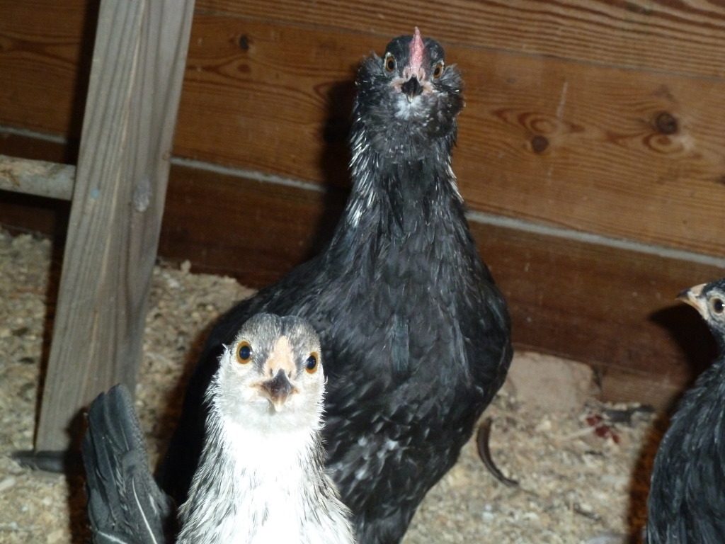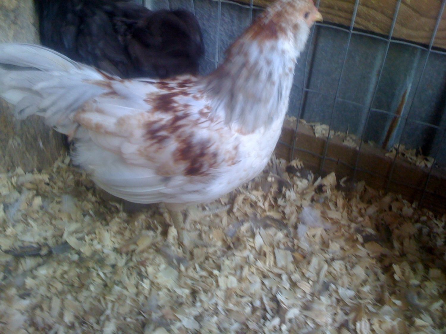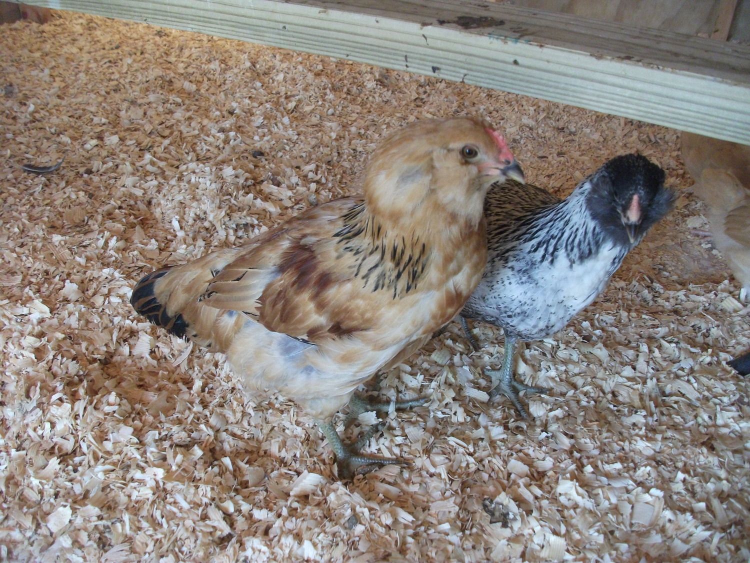 Shannon is the tan one on the right. Jill is on the left. Another EE is Dave, (the one standing in the plate) he is a cockerel and is already crowing.