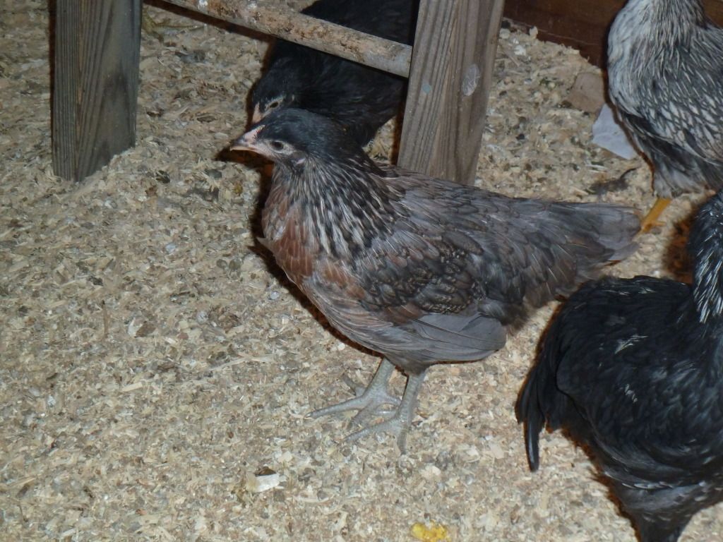 Thought I would add pics of my third little chickie, so everyone can see the changes going on in the feathering. Please, feel free to give me your guesses on his or her sex. His or her two flock mates after started practicing rooing. This one has not but, is a week and a half to two weeks younger then the others. I am really not seeing any red in its comb. What do you think???