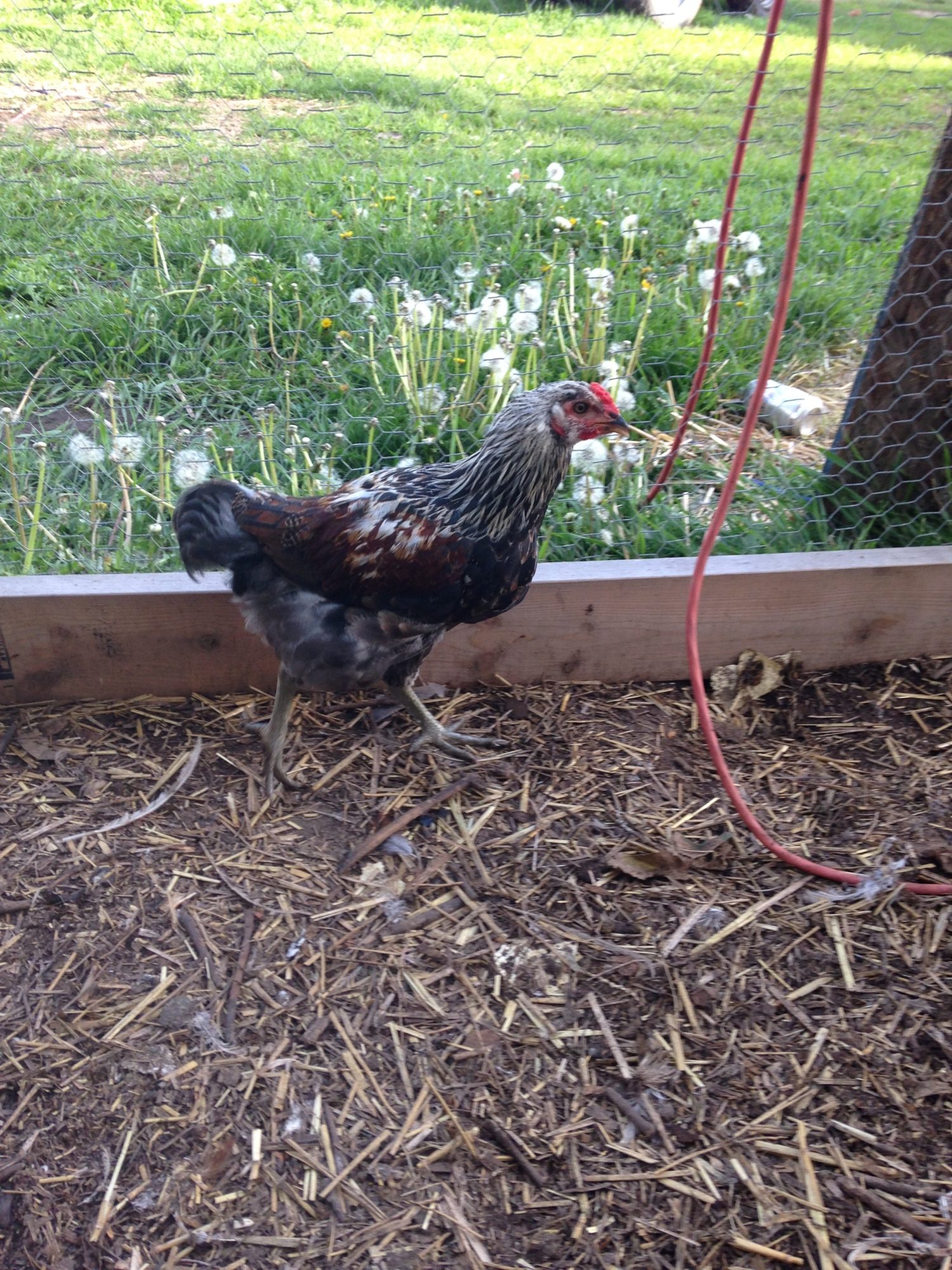 This is a pullet with the same base color, they were 'twins' until the roo started to go darker