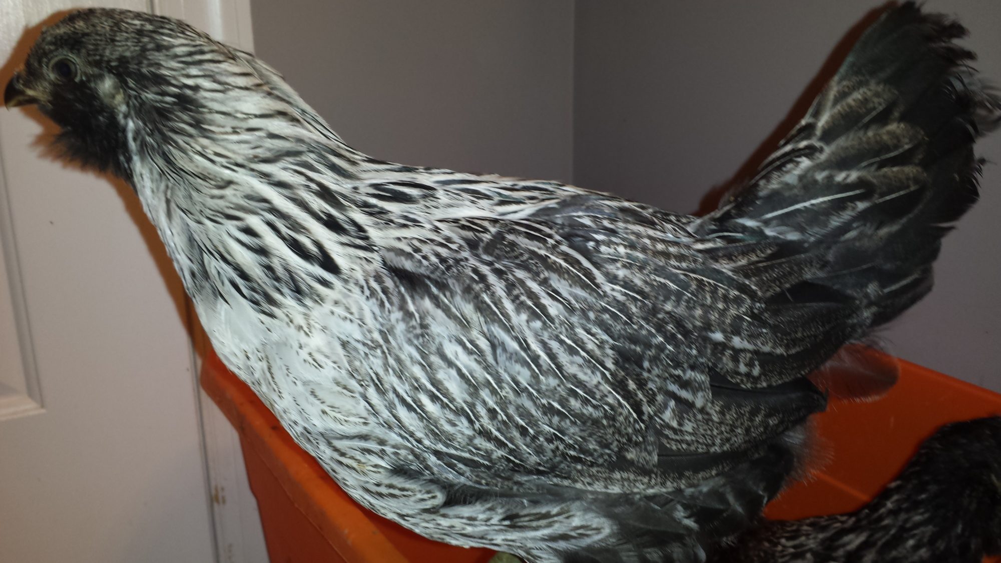 I do have another question thought, I want to know what the base color is called, I have only a few with this base grey, but I've never heard anyone say grey when talking about chickensFor your gray pattern question, the gene is considered a dilution of black, or double carry of Splash- and usually called blue- The most informative website I have found is here: http://kippenjungle.nl/basisEN.htmMy EE's are 11 weeks now (holy carp) This first one had me going back and forth for quite awhile, but I'm pretty (sadly) sure now it's a roo. The comb is smaller than the other boys, and not as red, the wing feathers were slow coming in this color, they started out much paler, and darkened, but I think the tail now has given away his secret identity.I do have another question thought, I want to know what the base color is called, I have only a few with this base grey, but I've never heard anyone say grey when talking about chickens