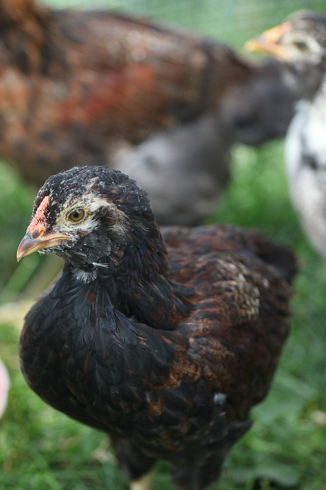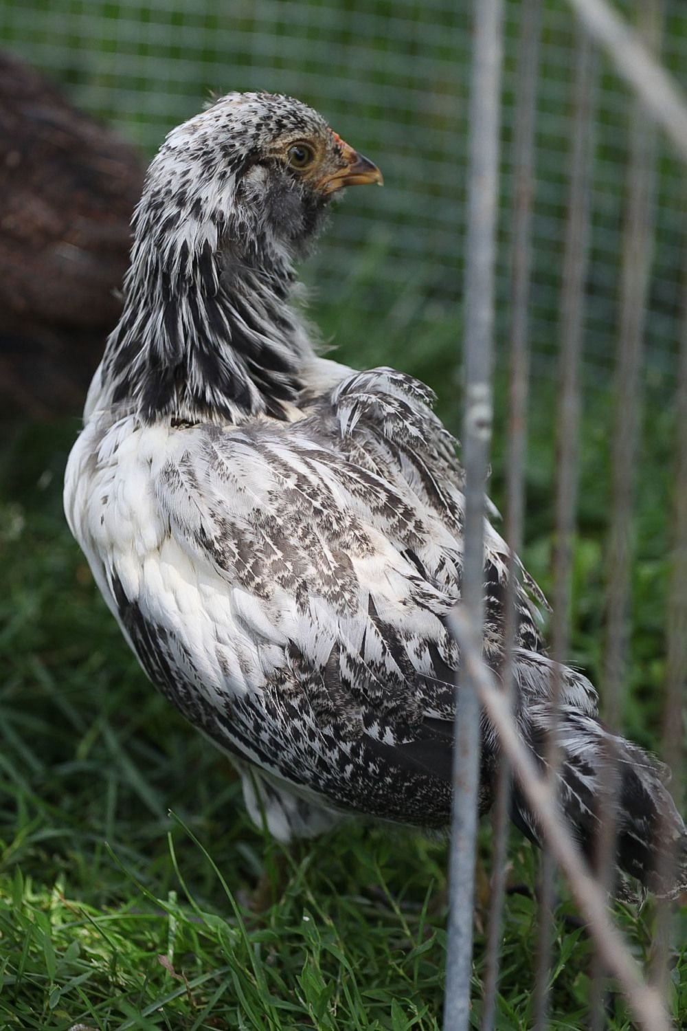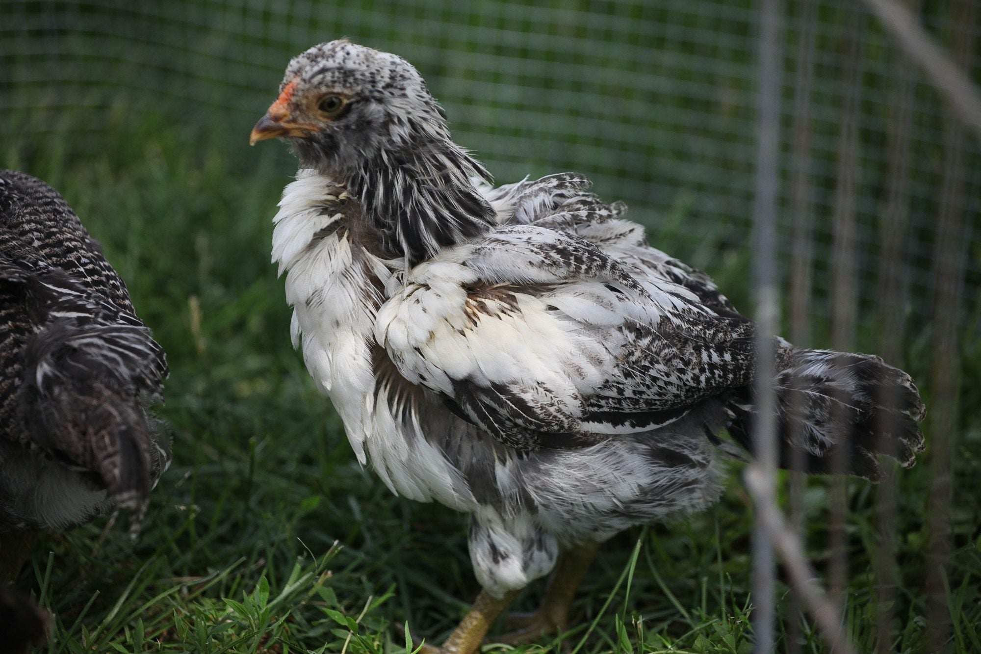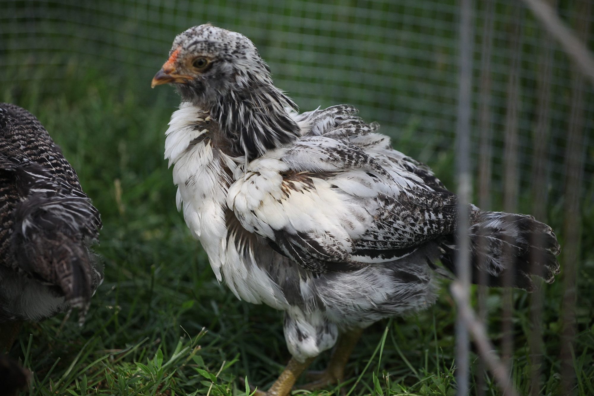 #3. Another black and white. I thought this was a cockerel when the bubs were young, but s/he is much more petite than the others and seems to have female-type feathering?