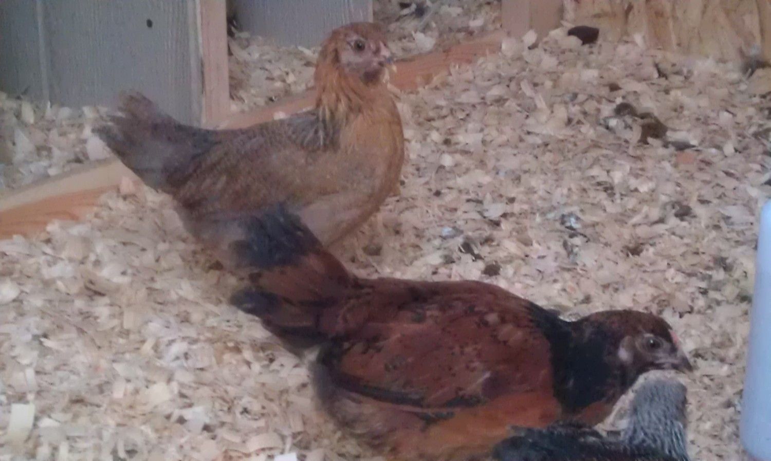 Oh, that picture is extremely helpful! Thank you. The picture really shows a boys' "look", eh? Do you have any pictures of them before they had their feathers? I just went out and bought three more today as day old chicks because I'm pretty sure Zartan is a boy, too.